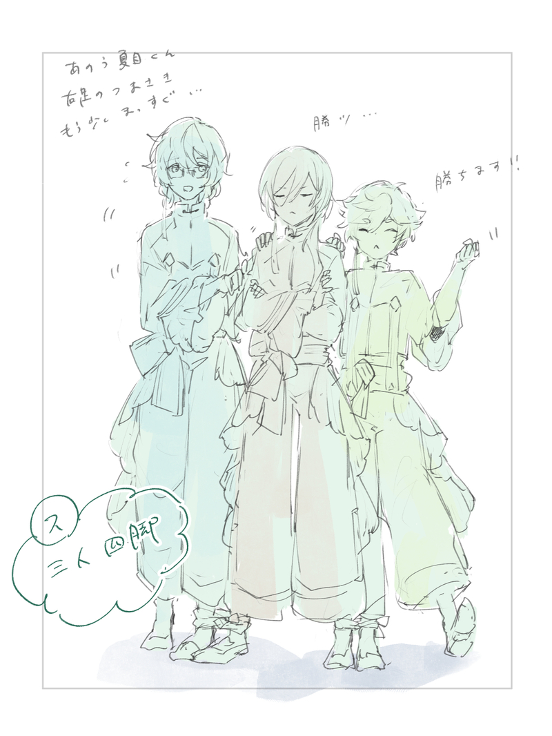 すずめ☆quiet followDOODLEなんとなく流れでスに三人四脚でわっちゃりもだもだしつつ笑ってほしくなったらくがきです2枚目は誰がということもなく3人いっしょにバランスくずしました show all(+2 images) Tap to full screen (size:1152x1536).Repost is prohibited Let's send reactions! freqpopularsnackothersPayment processing Replies from the creator Follow creator you care about!☆quiet follow すずめDOODLE次の特攻ガチャのしょたパワーがあまりにつよかったので、旧をしょたにしてざっくり着せた安直ならくがき2枚目は旧ふぃ転校組ちゃんですお目目ひらいてるほうに「こっち見てんじゃねーよしょたこんが」って顔をさせられてたらいいなの気持ちでかいたやつ 2 すずめDOODLE今日かいた完全にストレス発散用のあおばらくがき3枚うしろにいくほどざっくりになるっていうか3枚目はもはやしたがきすらなかった手癖たのしかた 3 すずめDOODLE最低限の時間をきめてせめて今月末だけでもルーチン練習というか勉強をした気になってみようお試し週間ができればいいなっていいなって頓挫するかもだけどとりあえず今月いっぱいがんばってみてほしいのきもちで震えてますたぶんこれを続けすぎてももたないからハードルを低めに、身にならなくてもいいから精神でやっていきたみ すずめDOODLE春が来ませんように今週(平日)なにもできなかったのに土日もひたすら寝る人でほんとなんにもできなくてくやしくてとりあえずざっくりえつむっぽいものをと思ったけど謎空間になったやつ すずめDOODLEエレメントのあの告知画像のあれがじわじわしてて旧したくなりがちなのかなあとりあえずあおばっててんしじゃないし、てんしのわっかもつけらんないな。お花のわっかかわりにあげようね…みたいならくがきです他の3人はクソデカ天使羽根もつけられそうだけど、あおばはせいぜい青い小鳥サイズがせいいっぱいだというマイ偏見 すずめDOODLEほんと最近土日は寝るしかばねでなんもできなかったので今日はかえったらなんかかきたいぞって思いながらあわてて発散したらくがき1枚めは、いつかまんがでかきたいれいくんさんにピアスかりることになったピアスあけたて3年初期あおばのつもりのあおばとれいくんさんのおててで2枚めは特に意味ないけどもう1枚…って発散を続けた旧あおばです 2 recommended works ttnpipi__piPROGRESS英智♀ 甘味料PAST【⚠️女体化注意】指アイビスと本気モードで描いたにょた幸村 2 ameDOODLE海外のギャルをお手本に描いたひがギャル 2 かすた丼(ぺん草)DOODLE #mhyk_にょたにょシノ&にょヒス takupyomDOODLE aaa_ka_oSPUR ME女装❄️と女装🐯と女体化ばじふゆとら/引用はハ◻︎プ口です 3 mochigome_23gouDOODLE暦ラン♀の落書き😚ポイピク初めて使ったから使い方合ってるかな...? はんちょーDOODLE※両方♀な金綱金ちゃんカワイイ義妹を自慢したい気持ちと独占したい気持ちが常にせめぎ合う義姉バカつな♀さん other8eDOODLEやまなしおちなしいみなし今日の夜の出来事23時も過ぎた頃、寝る支度を済ませたところでスマホがテーブルの上でかたかたと震えた。表示された名前を見て通話に切り替える。 「ランランいま部屋?」 少し舌っ足らずな嶺二の声がスマホ越しに聞こえる。珍しく少し酔った様子だ。 「ああ」 「よかったあ。いまからそっち行ってもいい?」 「今から?」 「そー。いまから。飲み足りないんだよねぇ」 「一緒に飲んでたやつに言えよ」 「おとやん明日早いからって帰っちゃったんだもん」 音也と飲んでたのか。あいつは案外あっさりしてるから嶺二の誘いも受け流してとっとと帰ったのだろう。この様子じゃうざい絡み方をしてた可能性もある。 「おまえも帰ればいいじゃねえか」 「無理だよ。もう来ちゃったし」 1312