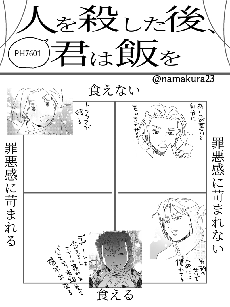 人を◯した後、君は飯を食べれるかテンプレート | 辻井 #pixiv https://www.pixiv.net/artworks/110986587