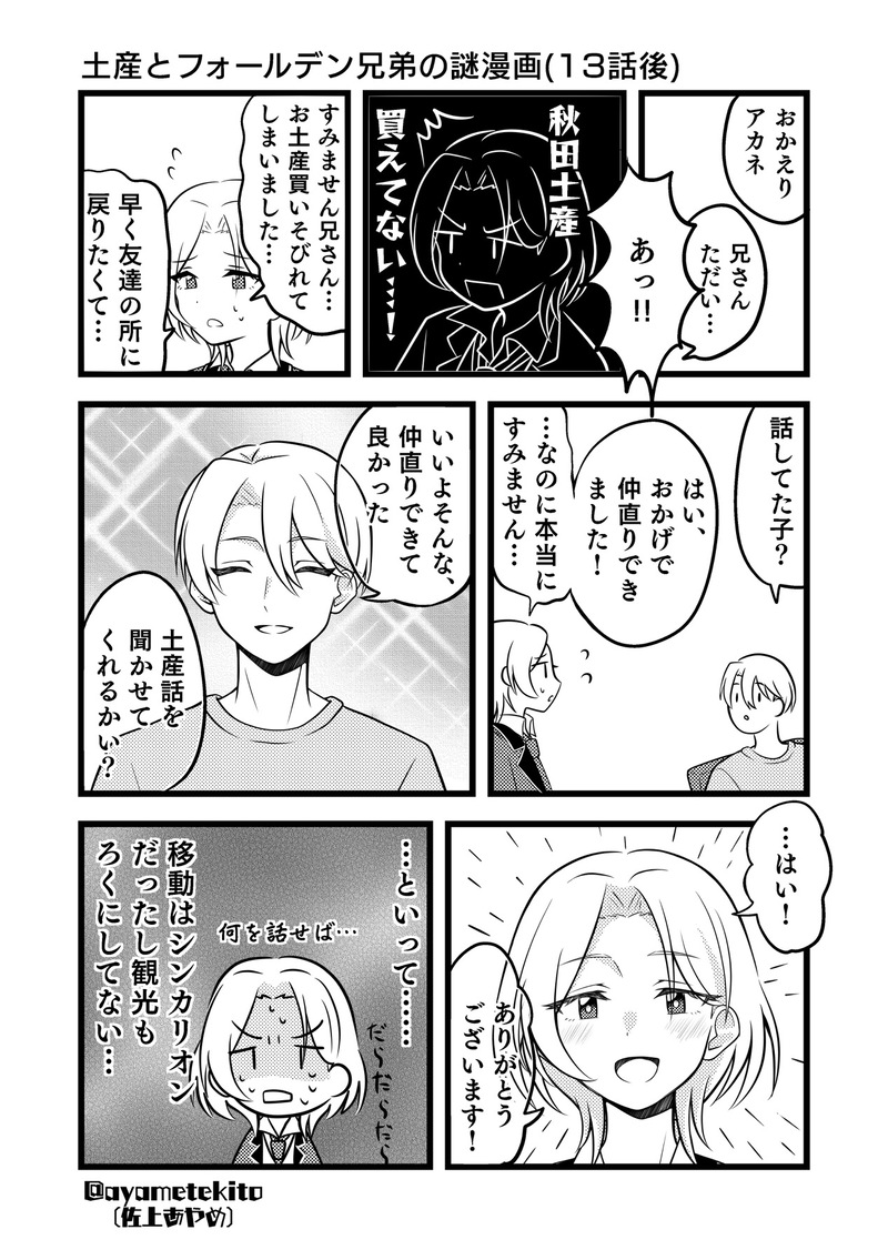 佐上あやめ☆quiet followDONE土産を買いそびれたフォールデン兄弟の謎漫画 #シンカリオンCW ##キズアニ Tap to full screen (size:1268x1800).Repost is prohibited Let's send reactions! freqpopularsnackothersPayment processing Replies from the creator Follow creator you care about!☆quiet follow 佐上あやめDOODLE意地悪な姉役の🌆ちゃんのドレス(何言ってんだこの人…)デザインめっっちゃ悩んでしまってる🌆ちゃんはちょっとしか描かないし多分腰くらいまでしか出ないんだけどね?!(諦めることも〜って言わせたいだけ🤣) 佐上あやめDONEアサアカオンリーの色々です!・ネップリ新規絵(フチなしOK)(ネップリではGlaze、スタンプはありません)・過去絵のネップリ説明画像・ネップリコード「QL3KMZX65D」ローソン・ファミマ等 写真用紙2025/07/28 00:00頃まで・漫画3ページ+あとがきよろしくお願いします❗️追記:ついったーの方にもコード画像を置いておいたのでよければご利用ください〜 7 佐上あやめPROGRESS🌆のことを美少女だと思っている? たぶんそう、部分的にそう 佐上あやめDOODLE兄さんおたおめらくがき 最近ついったにも上げてるとこっちの扱いに悩むけど… 佐上あやめPROGRESSいい兄さんの日だし(?)無配アサアカからチラ見せ(出すの遅いよ) 佐上あやめDOODLEおたおめタイセイくん落書き🎉 related works ココノカSPOILER幻覚なので全くネタバレではないけど1072話の発言ネタ べこDOODLEピンク色のバレンタインなヨウグズ🍫 わたさくDOODLE ちゃづDONE描いたやつその1※茨あん、ジュンあん 17 ちゃづDONE描いたやつその1※茨あん、ジュンあん 17 nnnnnnoodderaDONE【腐向け】チャバが酔ってハ崎さんに甘えてる漫画。ハ崎さんがトイレに行くのを我慢していたりする。 4 きくちゃんDOODLEサタン様犬好きかと思いきやロクサーンみたいなパターンもあるのでやっぱ人外思考なのかな~ 2watoyoDOODLE【朝のボールペン落書き】【日楠♀】【先天性女体化】日高先輩×男装後輩サキュバス家系楠ちゃん。海編。本当に気にしてるのは。 きくちゃんDOODLEサタン様犬好きかと思いきやロクサーンみたいなパターンもあるのでやっぱ人外思考なのかな~ recommended works 原稿する綾斗DOODLE英あん #あんスタ 3 き むTIRED #あんスタ瀬名泉そのうち塗る。つもり。2018.9.28 なまこ(ほたて)DOODLEかいたらひけないかなーとおもいながらかいたけどひけませんね 宝くじは外れました wanwandog0127MOURNING歌を忘れたカナリアは象牙の舟に銀の櫂月夜の海に浮かべれば 忘れた歌を思い出すというところがぴったりな気がしたので描きました。 2 原稿する綾斗DONE色んな英智くん ぷょしかDONE返礼祭のしののん!衣装がすきですね だっとMAIKINGらくがき 宇野🦋DOODLEみつる💙 梅酒美味しいTRAINING見下してる顔とかはぁ?って顔いいですよね〜…っていうだけのイラストです←せないずの初対面とかこういう顔してそう