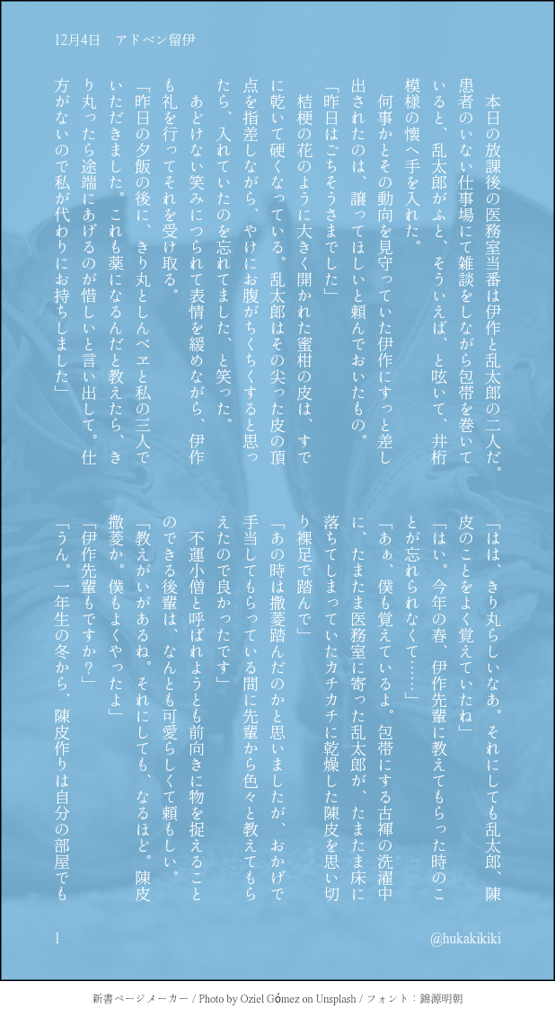 こちらでは主に、文庫ページメーカーさんをお借りして作ったSSの保管場所としての運用を想定しております😌