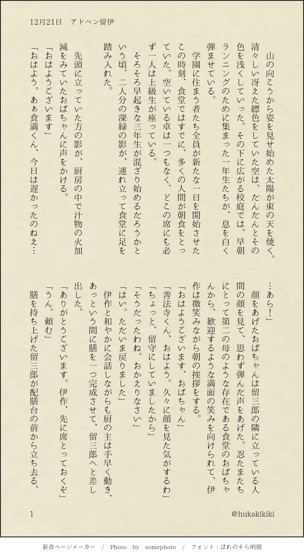 こちらでは主に、文庫ページメーカーさんをお借りして作ったSSの保管場所としての運用を想定しております😌