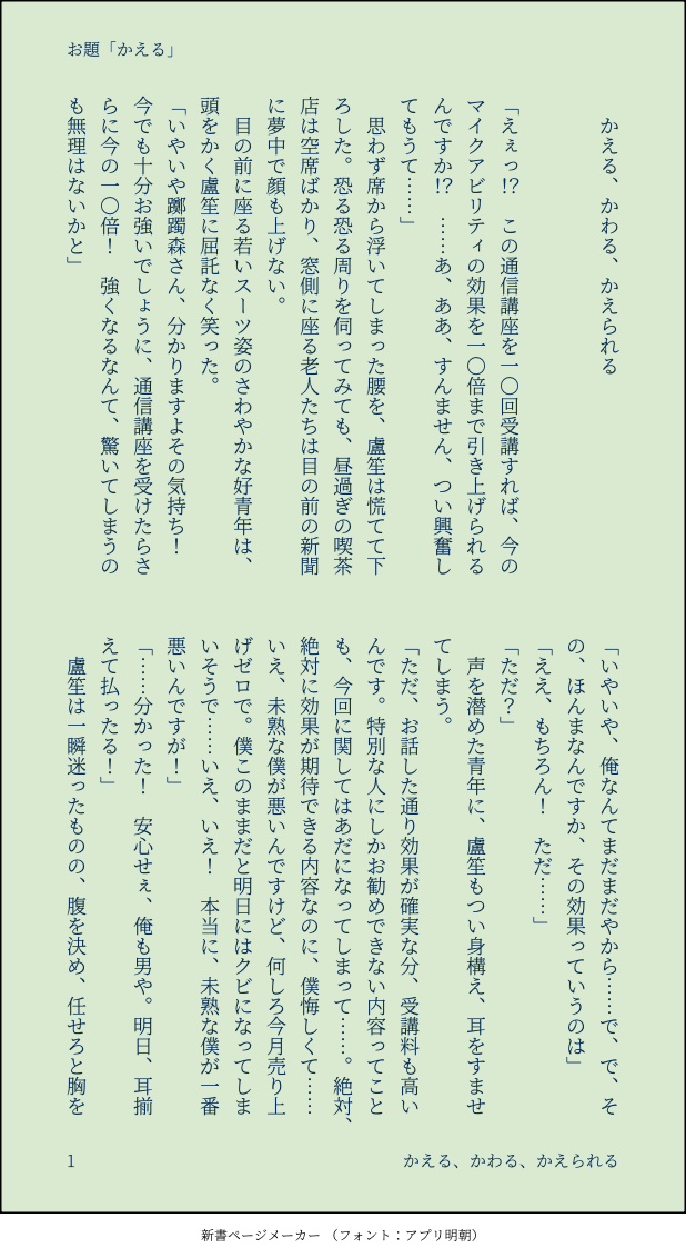 つなみ☆quiet followDONE #ささろワンドロライ 11月25日お題「かえる」くっついてないささろ。零と、サギろうとしているモブがいます。今にも騙されそうな盧笙と、それを聞きつけてどうにかしようとする簓の話。 #ささろ sasaro #ささろワンドロライ show all(+7 images) Tap to full screen (size:618x1132).Repost is prohibited Let's send reactions! freqpopularsnackothersPayment processing Replies from the creator Follow creator you care about!☆quiet follow つなみDONE #ささろワンドロライ2025/09/13課題「力」今回初めて「コマの上にキャラを描く」やり方を知りました…これやってみたかったんだよなあ つなみDONE #ささろワンドロライ2025/09/06課題「暇」 つなみDONE #ささろワンドロライ2025/08/30課題「間に合う」 つなみDONE #ささろワンドロライ2025/08/23課題「怪談」※8/27追記零のひげを描き忘れてて描き足しました…なんでそんなとこ描き忘れた!?今更気づいた自分にショック…… つなみDONE #ささろワンドロライ2025/08/16課題「合鍵」のボツver.です。せっかくなのでここで供養…。仕上げてみないと分からないのホント不思議。 つなみDONE #ささろワンドロライ2025/08/16課題「合鍵」 related works つなみDONE #ささろワンドロライ 11月4日お題+15分「はえる」(映える)(4/全8頁)できてるけれど次の関係に進むのにためらっている2人の話。・途中上とか下とかの話をしますが、最初から最後までささろです。・冒頭と最後にモブが出ます。 8 つなみDONE #ささろワンドロライ 5月4日お題「初夏」できたてのささろ。翌朝色々思い出して1人でもだもだしている盧笙の話。簓はあまり出てきません。あとほんの少しだけ零もいます。 8 つなみDONE #ささろワンドロライ 1月6日お題「あかり」両片思いのささろ。間違いなく両想いですが、若干すれ違い気味です。恋心を自覚した🧑🏫が思い悩む話。通りすがりのモブと0️⃣が少しだけしゃべります。 9 つなみDONE #ささろワンドロライ7月29日お題「携帯」aba直後くらい、まだ若干ぎくしゃくしているささ→ろ。簓は意識済の片想い状態です。暑い中、盧笙の部屋でダラダラしている2人の話。作中のアレの話。どうでもいいけど、一応検索してみて地域特有の言い方ではなかったぽいので、こんな感じにしてみましたが、やっぱろしょーにはちゅーちゅー言って欲しい……可愛いので……。 7 つなみDONE #ささろワンドロライ 10月21日お題「おねだり」できてないささろです。ついつい簓のわがままをきいてやってしまう盧笙の話。 8 chatakeDONEお題「おやすみ」 ああやDONE #ささろワンドロライ第115回「こたえる(漢字変換自由)」相互理解って難しいけどそれでもいいと思うお話。シリアスではないですがちょい暗。 3125 ああやDONE #ささろワンドロライ 第120回「爆発」 (+0.5h)アホギャグ。れー視点 1909 chatakeDOODLEお題「知りたい」+1.5hささらのカレーメシ動画がちょうどアップされた日だったので無理矢理絡めました 2 recommended works Lyrical K.i.DDOODLEいろいろささろ※本アカのアイコンとして描いたもの含む 7 rinchan454545DONE20201031ささ誕😊✨ささら君誕生日おめでとう〜〜🎉💓これは付き合ってないささろです!R18!エッチしてますので気をつけて下さい! 12 やすみ先生DOODLEもうガチャなんてこりごりや~~! chatakePROGRESS^3^ fuunoeTRAININGpose referenced from a bl pose bookModified a bit (;・∀・) ondoredesuDONE介抱 ondoredesuDONE💍婚約💍 もっこDOODLEお出汁香る無配でした 4 みち@ポイピクSPUR MEこのまえの続きの続きです。ヴァンパイアネタささろ見たい!+芸人やってるささろが見たい!の悪魔合体による吸血鬼🎋×芸人🌺のパラレルささろ。がっつりパラレル設定注意。※ちょい流血描写有り注意※エッチなことが起きそうで起きてないですが最終的にはR18本になります。 13321