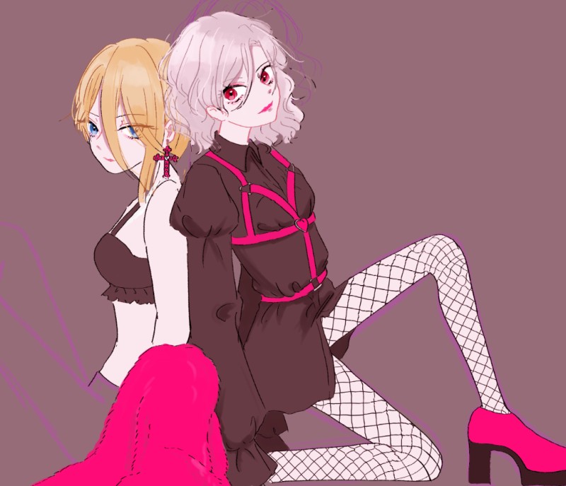 リョウくん♀はコウくん♀に体重を少し欠けてもたれ掛かってるイメージでした。