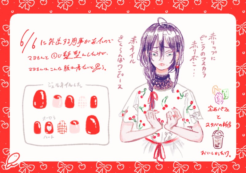 日記です。6日は用事で町に出るついでにマヨさんと同じ日に誕生日だったスイーツ大好きな涼太くんのお祝いで宝石パフェなるものを食べてきました!帰りにスタバの新作があるらしいとわかりそれも飲んできました!ただ、写真を撮ったはずなのにマヨさんと撮ったものは残ってなかったです……。