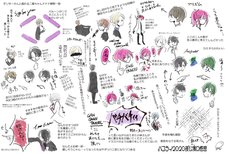 夜公演がオススメと言われバズライ2020を配信で見た後良すぎてかきなぐったレポ的な絵です。