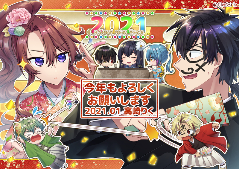 干支無関係の正月イラストですが、にぎやかで楽しい雰囲気を目指しました。