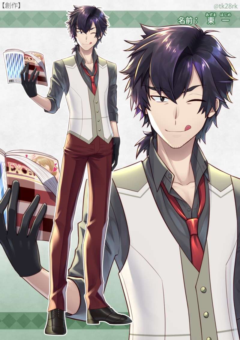 最近考えてる創作のキャラ。黒髪ヒゲおじさん。まだ決まってない部分が多いのでとりあえず外見と名前だけ。多分探偵とかそんな感じの職業にする気がする。