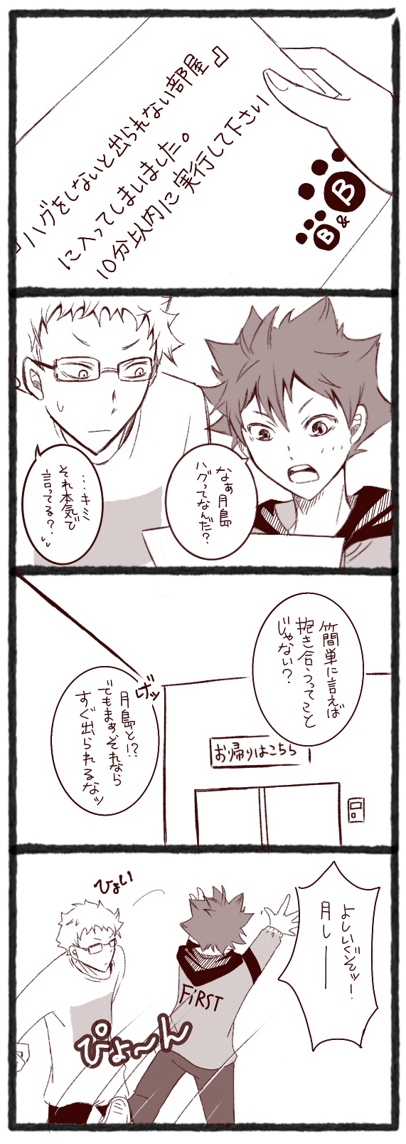 みわころりん☆quiet followDONE【ハイキュー!!】月日マンガTwitterの診断メーカーで遊ばせて頂きました(@Ramneko_25さま)😊 #月日 years show all(+2 images) Tap to full screen (size:571x1606).Repost is prohibited みわころりんDOODLE久しぶりにローさんらくがきしてみた😇💦なんか昔の方がちゃんと描けて気がする〜…⤵︎⤵︎ みわころりんPROGRESS久しぶりに研磨くん描きたくなった🤭 みわころりんDOODLE(今頃)進撃の巨人を最終回まで観ながら、らくがきしたリヴァイさんリヴァイさんカッコイイよぉ…まだ描きたい…😭 3 みわころりんDOODLE絵柄を変えたいなと、もがいてる人の落書き💦 みわころりんDONEHappy Birthday❣ 2023劇場版でまた会えるのが楽しみだ♪(あとツッキーが描きたかっただけのヒドイ落書きがあります😅) 2 みわころりんDONE何番煎じ?💦なじゅじゅさんぽネタの伏棘らくがきマンガ①😅 2 related works k__tksm0927DOODLE(月日)新しいコンドームを試す月島と日向のはなし。あんまり長く書けなかった…温かい目で読んでやってください…。パス:18歳↑ですか?(y/n) 2169 kogawaDOODLE月日/Tsukihina Now and then 4 マツリDONE高校二年生。季節は特に決めてませんが、たぶん秋あたり付き合ってないです。いつか付き合います。※いろいろと捏造した設定があります最終回まで読んでない方はお控えください『排球本!』のネタバレもちょびっとありますn番煎じのまとまりない文章ですがぜひ!つきひなかわいいね〜 7576 neko_ka_23TRAINING短い突発で方言は詳しくないのですんません!日向に選んで欲しい治を思いついたので吐き出しです。 3331 さなぎDONE マツリDONE高校生の春。 5950 さなぎPROGRESS月日(8/9までに完成させる) マツリDONE最中ではありませんふたつとも違う世界線だと思います。AとBでかなり温度差ありますお気をつけください 5640 マツリDONE春高前くらいのなんてことないお話しちょっと大人でそれでも子どもな、Aまでしか行ってなさそうで密かにCまで行ってそうな、恋人になって一年ほど経つ高三つきひなです。※最終回まで読んでない方はお控えください# 3月5日は高3月日で盛り上がろうという素敵なTwitterタグに、2021年に参加したときの作品です 9714
