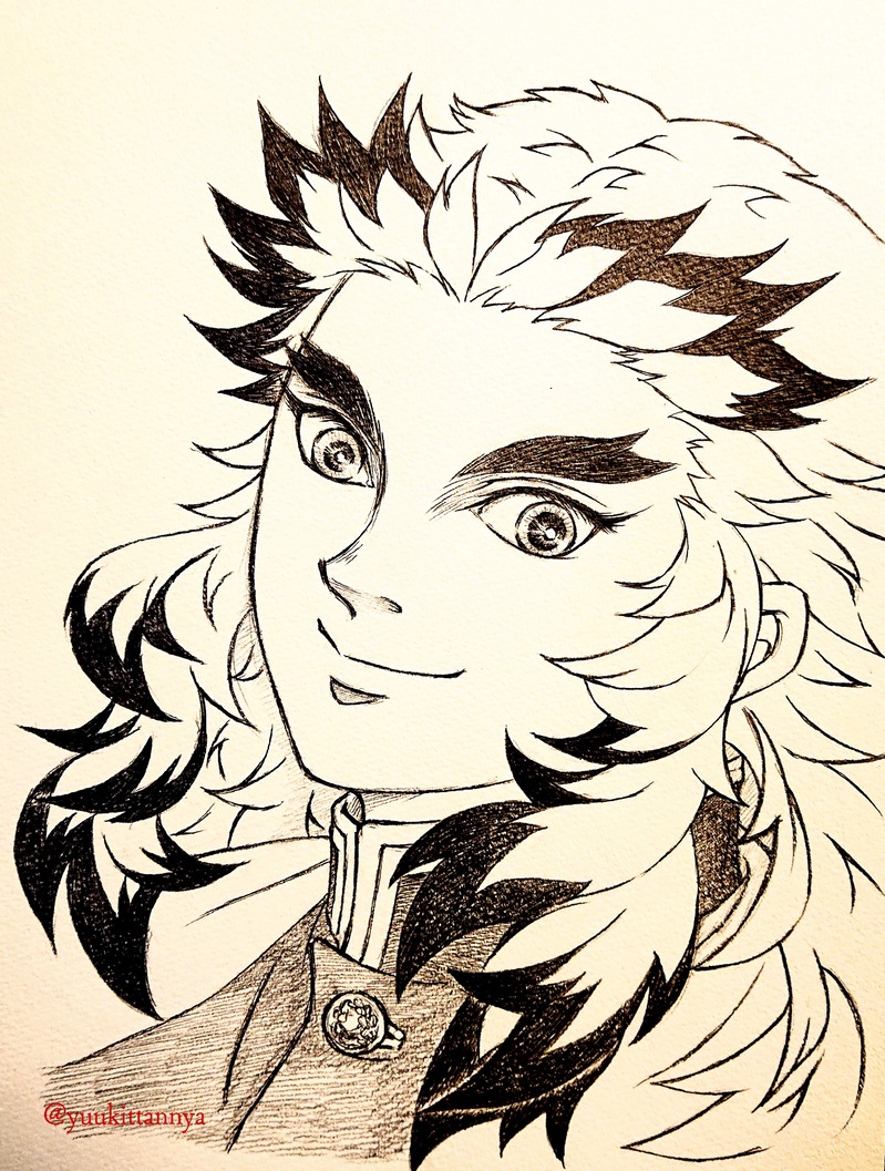 久々に描けた煉獄さん💖なかなかイイ感じに描けた💖やっぱりアナログはいいなぁ✨