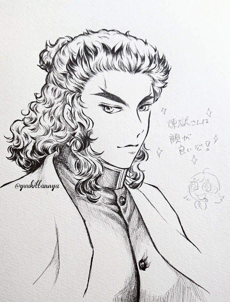 リハビリに描いた、隊服きっちり煉獄さん💖