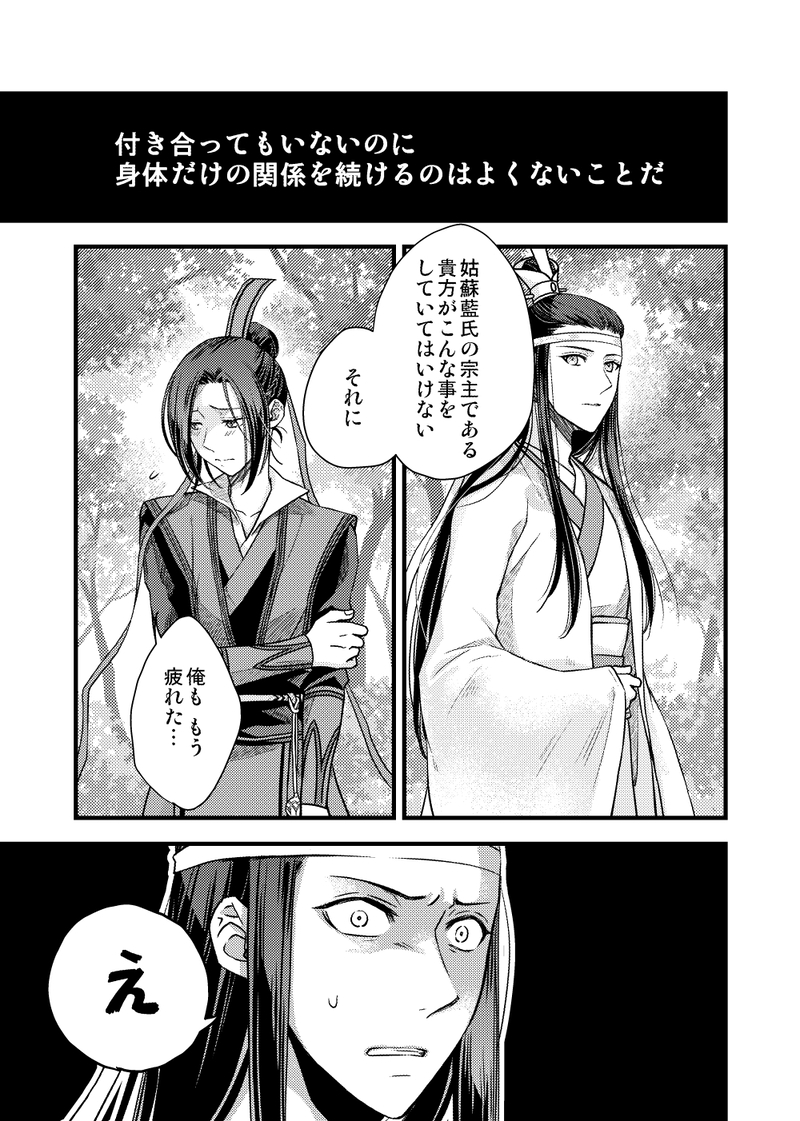 藍曦臣は返事を待たずに江澄の耳に唇をつけた。耳殻の溝にそって舌が這う。