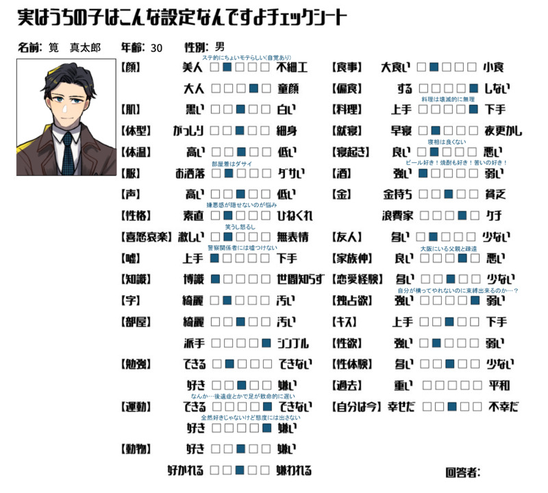 asasmamama☆quiet followMEMOゲンムカ 筧のチェックシート #幻夢課 dreamClass show all(+2 images) Tap to full screen (size:4861x4375).Repost is prohibited Let's send reactions! freqpopularsnackothersPayment processing Replies from the creator Follow creator you care about!☆quiet follow asasmamamaSPOILER捨てKPCで使用した累のイラスト現行未通過✖ asasmamamaSPOILER全部お前かよで使用した累のイラスト現行、未通過× 6 asasmamamaSPOILER「連れ去ってよ、エピローグ」で使用した累のイラスト。現行、未通過× asasmamamaSPOILER全部お前かよで使用した無能のイラスト現行、未通過× 9 asasmamamaSPOILERいたみあいっこで使用した澄晴のイラスト現行、未通過× 7 asasmamamaDOODLE矢神匠悟 related works asasmamamaDOODLER18 セックスしないと出られない部屋の七筧 2 asasmamamaDOODLER18 セックスしないと出られない部屋の筧七 asasmamamaDOODLEゲンムカ 筧の妹 3 asasmamamaDOODLEゲンムカ 普段の筧 4 asasmamamaDOODLEゲンムカ イッシと交番勤務してた時の筧 asasmamamaMEMOゲンムカ 筧のチェックシート 3 recommended works nap_p6DOODLE18歳以上ですか?(y/n) おみそTRPGDONE浮雲ゆらぐ 6 @キュマ/小熊奈津DONE今住壱花のキャラシまとめこの探索者を作る際、強い女性キャラやりたいなと思っていました。確か、立ち絵はとある好きなクリエータ様の絵を元にかきかきしてたわけで・・・・あの・・・某アニメに出てきそうだよね。RPの際、自己犠牲系のキャラをやったのは多分初めてだと思うのですがまあ、RPで相方様に怒られましたね(満足ありがとう、楽しかった。また、壱花を動かせたらいいですね。 8m2NZFj5TMrfBGySPOILERむつーさんの #壊胎 #傀逅 を仲間内でやらせていただきました。迷言集?になります。 asasmamamaDOODLEゲンムカ イッシと交番勤務してた時の筧 asasmamamaDOODLEゲンムカ 普段の筧 4 桐製の鈴SPOILER #しのんの壊胎 ログ※アナログ。ぎゅうぎゅう。最後のシーンかけんかった。深く考えてるの凄く良かったし、出目含め本当にドラマチックでした!2年温められただけある… だんしんぐたいだDOODLE本日の #壊胎 ハイライトさすがにこの状況は予想してないってパスはNPCの苗字ひらがな三文字 莉子/りしDOODLE多分着替えなさそうだけど、二次創作だからいいじゃない‼️やたら着なれてる感あって105ちゃんドキドキすればいいと思う(無自覚)23/07/28