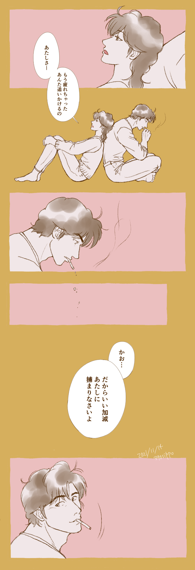 しっぽ。☆quiet followDONE冴羽さんはとっくに捕まってそうですけどね!笑3枚目はおまけ。笑ってる2人が好きです! #獠香 show all(+2 images) Tap to full screen (size:686x2000).Repost is prohibited しっぽ。DOODLE寒い日の節約術 しっぽ。DOODLEお家style香ちゃんのちょんまげは絶対可愛い! しっぽ。DOODLEこのポーズを見かけてぜひ2人にやって頂きたく描きました!6月はウエディング描きたくなりますね〜 しっぽ。DOODLE 2 しっぽ。DOODLEらくがきほーい しっぽ。DOODLE人間の厚み?立体感?を上手く描けるようになりたーい related works SasameREHABILIバレンタインに激しい愛を♥♥♥ ふみお/のくろDOODLEなんどろいどもあ のバニーちゃんシリーズの色を悩んでいる冴羽さんカラーの赤は手に入れるべきか…生足だというのもポイント高い あやか/すずかDOODLE軽率にちみ化していく所存 SasameREHABILIしつこくポイピク💦💦こ、これには、訳がありまして💦💦チョコメッセージ頂いた事により舞い上がった、お馬鹿な細雪の元にネタが…獠ちん、香にゃんが『ちゃんとお礼をしろ!』と言ってたのでの投稿であります💦しつこくてごめんにゃい 4 こよみTRAININGこよみんちの獠と香で「バスタイム」と「モーニングキス」のお話はどうでしょう? 1ツイート(140字)以下だと嬉しいですっ!#CHしたったー #shindanmakerhttps://shindanmaker.com/965157ギャグ路線?😅お題の言葉は直接は使ってない😅直接表現はしてないので、全年齢。 こよみTRAININGこよみの獠香で「夜這い」と「催眠術」のお話はどうでしょう? 4ツイート(560字)程度だと嬉しいですっ!#CHしたったー #shindanmakerhttps://t.co/pVfxz1idO3字数がちょっと少なかったかな?気にしない!「夜這い」と「催眠術」でびっくりでしたが、こんな感じになりました。 SasameREHABILI細雪んちの獠香で「ローマン」と「防弾コート」のお話はどうでしょう? 5ツイート(700字)以下だと嬉しいですっ!#CHしたったー #shindanmakerhttps://t.co/ou3tHxbMVHCH上映会でセイラ回が頭から離れなかったご様子…うん、頑張ったwww 2 ふみお/のくろTIRED「なんやかんやありまして」体を震わす香ちゃんに興奮する冴羽さんだったり 2 SasameREHABILIあなたは細雪んちの獠香で【噛んで微笑ってもう一度キス / あれは嘘だった】をお題にして140字SSを書いてください。#shindanmakerhttps://t.co/FT9UR8u5Hs『血の証』を見た獠ちんからクレームがありまして「書き直せ!!」と言われちまったよ…(*꒦ິ꒳꒦ີ*)獠ちんが悪いんじゃん!! recommended works あやか/すずかDONE「香…前も言ったろ?だから目閉じろよ…」”目ぇでっけ””獠顔近い…っ”―凝視―「いや…だから目をだな…香ちゃん?」「?」「(汗&溜息)」ΣΘ)β=・・・ΣΘ)β=・・・みたいな感じで♡獠が自分に手を出すとか微塵も考えてない系のかおリン😁 3 ふみお/のくろDOODLE香ちゃん一緒にポッキー食べよ「チョコの部分はお前な」 SasameREHABILI24時間以内に3RTされたら、細雪んとこの獠香がせんぱい… と言っているシーンをかいてみるね☆#shindanmakerhttps://t.co/ZQoLTsmLmS3RTいったので書いてみました。他Ver.がご希望の方はDMまで♥書けるかどうかは微妙なり(´∀`*)ウフフ SasameREHABILI1時間以内に4RTされたら、細雪とこの獠香がばかばかばかっ! と言っているシーンをかいてみるね☆#shindanmakerhttps://t.co/ZQoLTsmLmSお題2つめ!!リツイートありがとうございましたぁ!! 2 SasameTRAINING昼休み中の140字細雪とこの獠ちんと香にゃんは、文中に『一瞬』を入れて【心配】をイメージした140文字作文を書いて下さい。#140SS #shindanmakerhttps://t.co/rV0htt2t08 ふみお/のくろDONE恥ずかしがり屋の香ちゃんが大好きなんです。多分、奥多摩後のすぐの2人。 3 ふみお/のくろDONE公私ともにパートナーとなったら、依頼中にはどうするか…2人で話し合ったりもしているんでしょうか。冴羽さんとしては依頼中とは言え香とのスキンシップは大事な時間だと思っているので、話し合いは揉めたでしょうね笑私の中の2人は根っからの仕事人間なので、依頼中は(特に香ちゃんは)頭からすっぽ抜けたりするんじゃないかなーと。でも2人はそれ以上にベストパートナーなので、いつだって心は繋がってると思います。 4 かほる(輝海)DONEシティーハンター冴羽獠×槇村香原作以上の関係。あなたはかほるさんちの香ちゃんで【好都合 / 可愛くなってる】をお題にして140字SSを書いてください。#shindanmakerhttps://t.co/pbDCGWZgDv かほる(輝海)DONEシティーハンター冴羽獠×槇村香原作以上の関係ワードパレット13.水星目線/薬/水曜日 461