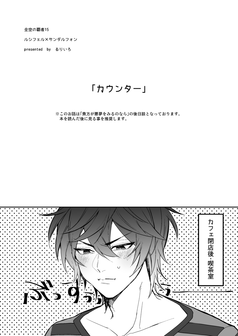 ぺき*☆quiet followINFO先週の「全空の覇者15」で無配として配ったものになります。話の内容は、今年8月の「超全空の覇者2020」で頒布した「貴方が悪夢を見るのなら」の後日談となっておりますのでそちらを読んだ後に見るの推奨です。当日スペースに来てくださった方、ありがとうございました! show all(+6 images) Tap to full screen (size:2150x3035).Repost is prohibited Let's send reactions! freqpopularsnackothersPayment processing Replies from the creator Follow creator you care about!☆quiet follow ぺき*PAST去年のキスの日にかいたやつです(ルシサン)※テンプレお借りしました ぺき*DOODLE【中世パロ?ルシサン】こういう〜マスカレイドナンチャラ〜みたいな題名がつきそうなパロめっちゃ似合うよね…と思って描いた舞踏会で踊ってくれ… 2 ぺき*INFO先週の「全空の覇者15」で無配として配ったものになります。話の内容は、今年8月の「超全空の覇者2020」で頒布した「貴方が悪夢を見るのなら」の後日談となっておりますのでそちらを読んだ後に見るの推奨です。当日スペースに来てくださった方、ありがとうございました! 7 ぺき*PAST【再放送】お花見しにきたけど全く花を見ていない春のルシサン 6 ぺき*PAST【再放送】深夜にお送りするタイプのルシサン ※全年齢 4 recommended works 唯翔(yuito)DOODLE電鋸男腐/わんわんデンジくんお胸のヒモは描くの忘れましたw Frysheep0424DONE【hrki】和指偶共感了!r18要素含有 14 uragi_neppuriDOODLE 3 さばみそ定規MOURNING⚠女体化 五夏⚠下書きから書き直すかも…塗っちゃって勿体無いのでぅp あほのちぃすけDOODLEFucking flowerもどき 雪時雨DONE星空カフェ☕🌟(過去絵修正版) 62210lDOODLEstgr의 이토 형사와 소라카 씨입니다.날조 포함 이것저것 주의... 3 k41r3IKAPASTマルベッコーちゃん ドット絵(前の投稿と同じです) @zatta_yuyuyunoDOODLE童貞すぎて伝わらないロロ先輩と恥ずかしくて言えない監督生のロロ監おまけは学習した攻めのロロ先輩大事な所は出てないけど普通にすけべなことしてるしキャラ崩壊注意⚠️ 2