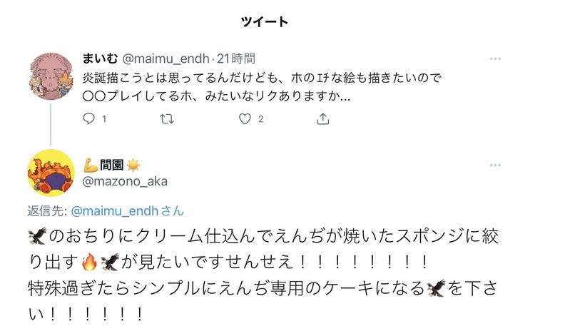 まいむ☆quiet followDONE間園さんが下さったリク分です!特殊…の部類なんですかね…(麻痺中)直接的な描写が苦手な人はやめときましょう!間園さんありがとうございました!だいちゅき! show all(+1 images) Tap to full screen (size:1475x869).Repost is prohibited Let's send reactions! freqpopularsnackothersPayment processing Replies from the creator Follow creator you care about!☆quiet follow まいむDOODLEホ炎も好きなんです…オkな人だけ見てやってください=!パスワードは炎の誕生日数字4つ。いやでも、たいしたことないよ絵の内容は…😇描いてて爆楽しかったのは事実… まいむDONE間園さんが下さったリク分です!特殊…の部類なんですかね…(麻痺中)直接的な描写が苦手な人はやめときましょう!間園さんありがとうございました!だいちゅき! 2 まいむDOODLEらくがき まいむDONEリプきたセリフで一コマシリーズ、なぐもんさん、ありがとうございましたー!セリフ少し変わってるけどごめんなさい😳💦また構ってやってください!☺️18⬆? まいむPAST最近のやつ〜リプのも入ってます、ありがとうございました!☺️ 8 まいむHappy New Year先日1月9日開催のインテックス大阪COMICCITY 121にて無料配布致しました、掲載予定と予告しておりました本文です☺️会場にてお受け取り頂いたお客様、本当にありがとうございました、会場限定の『続き』は是非内々でお楽しみ下さい☺️今年も良い一年になりますように☺️今後ともまいむ屋をよろしくお願い申し上げます🎍☺️パス:18歳以上でしょうか? 7 recommended works @yuzu_18DOODLE炎ホ。意外にもスリッパ文化のとどろきけ…。素直にありがとう言えるといいね。#ゆずのぽいぴく nachiii_omgDONE炎ホ/片思い/7P 7 かつみぽいぴくPROGRESSトップ2の恋愛事情は〜 続きの冒頭ぶぶん。今回はホが炎さんをカメラで撮影しにいくデートをしたりヒーローぽく捕物したりする予定です。 9748 109zukiSPOILERプルトラ20210711展示用えんほ漫画※30巻以降のネタバレがあります。パラレル漫画なので深く考えずお読みください。最後2Pは付き合ってないえんほ漫画プルトラで展示しようと思ってましたが、間に合わず……いつか描きたいです。 8 yukkin4213DONE付き合って間もない炎ホ。炎さん誕生日の数日前のお話。ホのこの重みは無意識で言っている。 11 モジモジPROGRESS色塗りするっ 空雨KoradianceDOODLE世界树x多托雷 多托雷烧树不成反被x 触手play作恶多端的鲨鱼终被制裁 モジモジDONE休憩ー!! モジモジDONEスチパンの2人