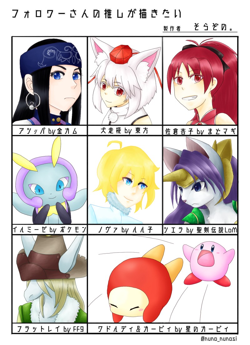 sorazono☆quiet followDONEフォロワーさんの推しを描いたやつです #ゴールデンカムイ #東方 #まどかマギカ #ポケモン #宇宙パトロールルル子 #聖剣伝説LoM #ファイナルファンタジー9 #FF9 #星のカービィ Tap to full screen (size:1482x2048).Repost is prohibited Let's send reactions! freqpopularsnackothersPayment processing Replies from the creator Follow creator you care about!☆quiet follow sorazonoDOODLE1日1うちの子1日目:ルーン・リサッカ sorazonoMAIKINGシノビガミココロストPC2菖池紗耶(しょうちさや)右目に花菖蒲が咲いた女性妖魔絶対殺すマン。例え相手が既知の関係であっても妖魔は許さない。塗りが間に合ってないのでこれから仕上げます(横になりながら) sorazonoDONEインセイン「サウザンクロス」のPC 天乃川徹そういえば投げてなかったなって 4 sorazonoDONETRPGユメワタリのPC『ロラン・グラスランド」ユメワタリはいいぞ(呻き) 7 sorazonoDONE sorazonoDONE最近描いたやつ 5 related works 鬼さん_DONE毒統一ptで大体使うポケモン達です。 ふじ@fuji_fujiFMAIKING 🌺萌楓🐶DONE今まで描いてきたお気に入りレシラム集を集めました#ポケモン #レシラム 10 くらげ★DONE #ポケモンちょっと早いけど、大好きなアマカジちゃんでクリスマス絵 ラテ茶TRAINING #ポケモン くらげ★DONE #ポケモン ミミッキュ YeshiDOODLEヤドンニンフィア 🌺萌楓🐶DOODLE落書き+ネタ#ポケモン #ゼクレシ 10 ゆきたかPAST気に入ってるやつ recommended works jun2900DOODLEアオリ構図の練習に volke.DOODLEうちの子『ヘルミーネ・トレーガー』ちゃんアナログ絵です♪#うちの子 #ヘルミーネ・トレーガー #オリジナル #オリキャラ #創作 #創作キャラ #アナログ絵 #アナログ #義手 #パンツァープッペ policyjapanPAST以前、ホームページを開設していた時に描いたもので、上部にはアドレスが記載していました。 しょうかPASTミクコス桂成さん しょうかPAST桂成さん。頑張ってたけど途中で力尽きてる 迷兎*DONE 魚ぜんまいDOODLE透明感ある塗りの練習見事に失敗した 透明度高い水みたいな塗りする人凄いよね まろんとDONE 鴨杖もよDONE【Sexia:Lerea memory】レレアスマホで厚塗ったやつです(*^^*)