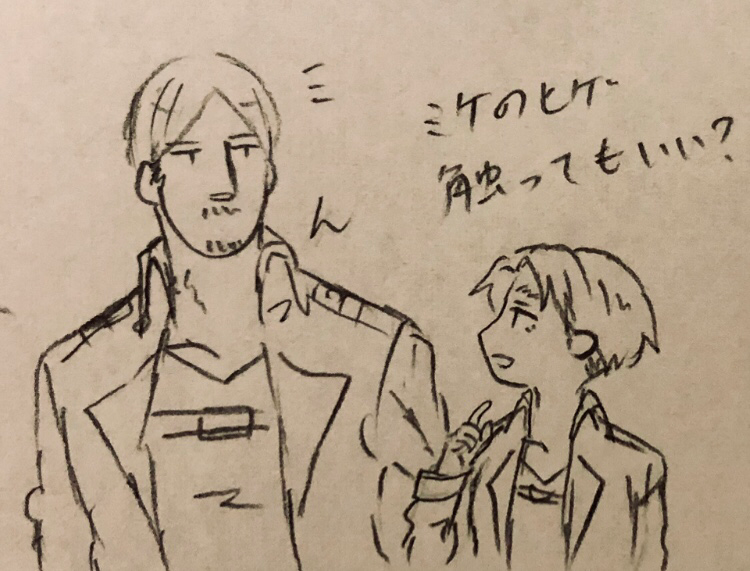 もつに☆quiet followDOODLE進撃落書き。せっかくなんで、テーマ別に過去に描いた落書きをいくつか載せていきます〜 show all(+2 images) Tap to full screen (size:750x571).Repost is prohibited Let's send reactions! freqpopularsnackothersPayment processing Replies from the creator Follow creator you care about!☆quiet follow もつにDOODLE「〇〇しないと出られない部屋」に閉じ込められたミケナナ落書き(オチなし) もつにDOODLEミケナナ落書き(背後注意) もつにPROGRESS進撃ミケナナ。ツイッターに上げたものより若干範囲が見えてます。 もつにDOODLEミケナナ時事ネタあんまりやらないけど「social distance」って単語をナナバさんに言わせたいがためだけに描いた。 もつにDOODLEこの二人はこういうことも他意なく出来そうという妄想から。個人的にカプ要素はない、はず。 2 もつにDOODLE進撃落書き&コラボっぽいやつ。余談だけどピ○ミンの大きさって我々の世界だとプチトマトぐらいの大きさらしい。(公式ホームページ情報) recommended works joshimaDOODLE #イナズマイレブン #灰崎凌兵 とりももPAST #イナズマイレブン #不動明王イナジャパ入りおめでとう✨ あ、ヤノじゃん!!MOURNING背景も透けとるし、左上のワケわからん線が最後まで消せんで諦めた絵 あ、ヤノじゃん!!DONE明日の本誌展開によっては塗る気無くなるかもしれんので急いで塗った。全兎赤民の同志皆さまが明日を幸せに乗り切れますように😭 あまもとTIREDスマホで塗ってた 瀬田マキDOODLE 石蕗DONE恵方巻を食べる旭さんと大地さん。 sakuramoti_0928SPOILERハイキュー漫画あり。Twitterに上げたものです。 4 まつきちちゃんはポイポイしたいPAST