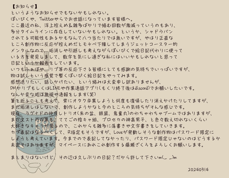 testnow55☆quiet followMEMOなんてことのない、私の今後の予定です。長々と画像で書いてますが、精神的負担軽減の為に、ぽいぴくで絵日記みたいなのをやろうかなという感じです。 Tap to full screen (size:1858x1442).Repost is prohibited Let's send reactions! freqpopularsnackothersPayment processing Replies from the creator Follow creator you care about!☆quiet follow testnow55DOODLE指描きで落書き。肌色は控えめかもしれないけど、軽度センシティブ。朱の盆と鉄鼠ばかりだよ。成人済みですか? 3 testnow55DOODLE人体と、鉄鼠のしゅけべな顔練習。下半身が露骨に出てはないけど、成人済み限定です。成人ですか? 6 testnow55DOODLEワンスで使ってる自キャラ?を鉄鼠にしてみるの図。雑トレ注意。 testnow55DOODLE鉄鼠がもし妊娠したら、っていう男性妊娠ネタを妄想しての大きなお腹で描いてみた落書き。朱の盆が相手ならいいなと思って描いてるから朱鉄で。 testnow55DOODLE朱の盆、お誕生日おめでとう!!朱鉄要素有ります、あと二枚目が肌色注意なので、成人済限定です。 2 testnow55DOODLE朱鉄のイチャイチャ自家発電したくて、とある画像参考に殴り書きしたやつ。念の為、大人向けです。成人ですか?(yes/no) recommended works 3iiRo27DONEritk版深夜の60分一発勝負第六回 お題:クリスマス 待ち合わせ司視点 両片想い 8 🍙がおいしいDOODLE 2 3iiRo27DONEritk版深夜の60分一発勝負第八十四回 お題:「挫折」「逃げる」類に渡すことができなかったあるものを、司があげようとする話。司視点 6513 nenete_prskDONEようやく書き終わった!トロトロ媚薬えっち完走!18↑?【yes/no】 2021 さいさいMOURNINGオメガバース好きなのに書いたこと無かったからって理由で見切り発車で思いついた話です……( ˇωˇ )18禁にするか全年齢にするか悩んでる…… 1174 ユナノDONE派生🎈🌟ジョンウェン(弟兄)調べすぎた兄と爆速展開についていけない弟 ocaasqDOODLE🎈🌟(🍎) 5 深巷明朝卖杏花MEMO预警:dirty talk/怀孕相关口嗨/双⭐️冬/宫颈奸/极度的OOC灵感来源于我做的一个梦,请务必观看预警再阅读。 4398 🍥🍥🍥DOODLEルドハル🎼🍎🍎がメイド服着てツインテールしてる(女体化ではない)その他+後方注意 5