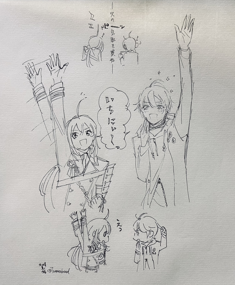 リョク☆quiet followDOODLE鯰尾藤四郎と山田三郎だよ ヒプマイ二郎三郎のいちにい〜!を聞いてから描きたかったやつ 三郎って意外と身長あるんだ...14才にして...三郎の歌声かわいいし色気あるしめっちゃ好きや... Tap to full screen (size:2472x2998).Repost is prohibited Let's send reactions! freqpopularsnackothersPayment processing Replies from the creator Follow creator you care about!☆quiet follow リョクDOODLEミュージカル『I'm donut?』、通称ドナミュの悪魔マキアさん(荒牧慶彦さん)I'm donut?というお店が実際にありますが、制服デザインがかわいいですよねちょっとクラピカっぽい服装(´ω`*)エプロンみたいな服の下に着てるものはどうやら人それぞれみたいです悪魔マキアさんチョイスなのかな?肩にかわいい飾りがついたシャツがお似合いでした°˖✧◝(⁰▿⁰)◜✧˖° リョクSPOILERドナミュの覚え描き~ (センシティブかどうかわからないけれど一応公演期間中なのでワンクッションを/イラストはイメージです)色々線が汚いのはご容赦ください。。。 全部が素敵なシーンだった!🍩🍩🍩久々にポイピクにも投稿するぜ!!! 2 リョクDOODLEみすみー△ リョクDOODLEあれこれ考えて描いてて気づいたらノースリーブ一期描いてた、、、 袖は想像上で勝手にカットされました 大阪城イベ進めなきゃじゃんー リョクDOODLE泛塵と大千鳥十文字槍 丁度良い高さに腕が。。。 リョクSPOILER无伝の気になった大千鳥らくがき観てる側としては全体的に楽しいシーンなんですがちょっと視点変えるとあっそうだよね、、、と心がキュッとなりました でも個人的には好きな演技だったり。。。 recommended works おむさわDOODLEわーいヽ(*´▽`)ノ※ポーズ集をお借りしております。#刀剣乱舞 あずき@本丸DOODLEゆるゆる薬さにマンガ⑨女審神者顔出しです。歌仙さん描けて楽しい。 あずき@本丸DOODLEゆるゆる薬さにマンガ⑪※女審神者顔出しですこんのすけ難しいです…! ふじゆう5106DOODLE笑いながら戦う長義くん描きたかった kinoTRAINING線画どうにもできなかったのでそのまま色乗っけ練習 こめわけDONEばみくん🏵 azutyaDOODLEカッコいい刀剣男子はどこに行けば見られますか?_(┐「ε:)_#太郎太刀#三日月宗近#刀剣乱舞 みやみDOODLEにょた南泉!描きたくて描きたくて描いた!にょた南泉は脇差サイズくらいで顕現していると嬉しい。色々と好み過ぎるのでまたかく mosukeDOODLEお絵描きリハビリ~にゃーさんに「ん?一緒に晩酌でもするかい」て言われたい人生だった…しゅき
