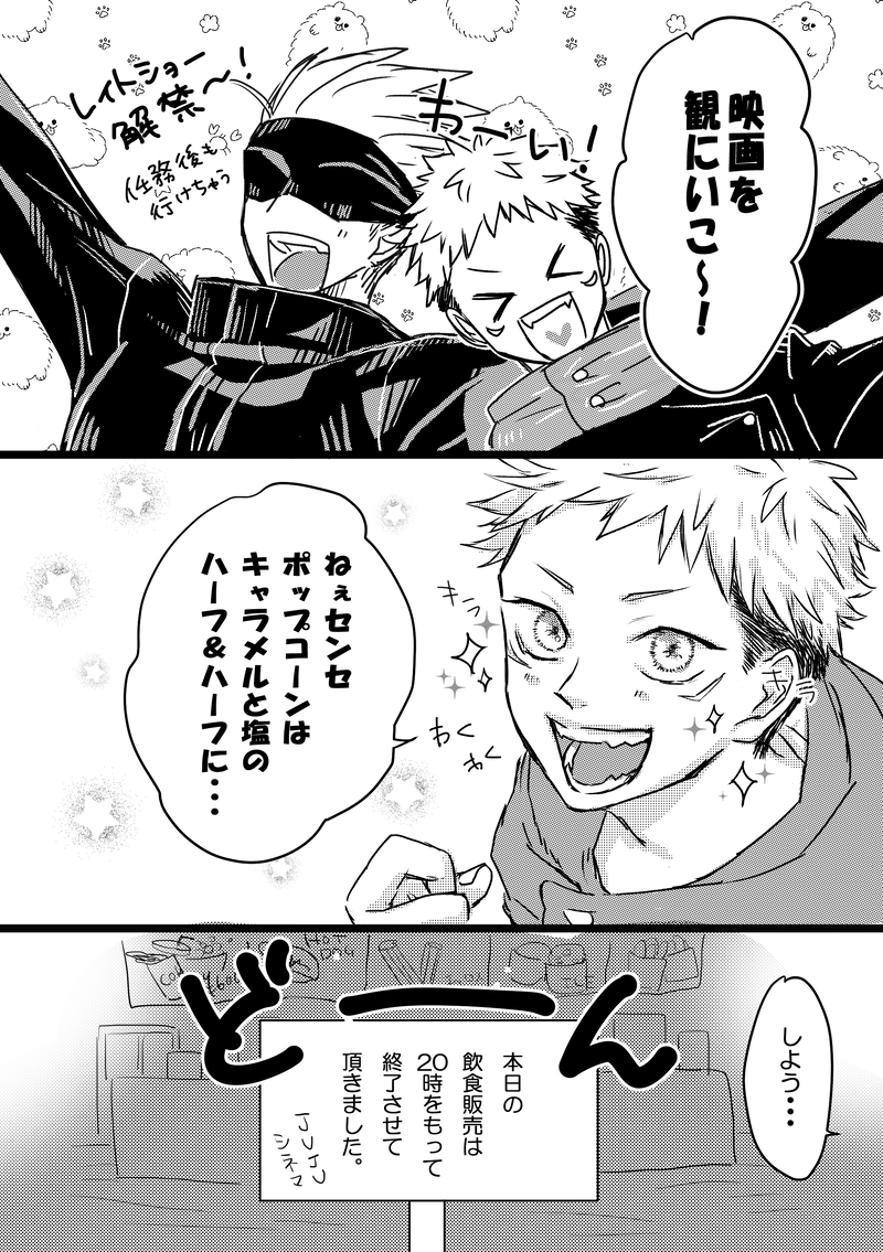 withMKS☆quiet followDONEはぴごゆ展示①(全年齢)ちょっと前の緊急事態宣言が続いてた頃に描いて放置してたものを手直ししました。レイトショー解禁とか、売店が閉まっちゃってるのはその名残両片思い中だといいなぁと思いながら描きました。※当時は売店の関係でもはや容認されてましたが、飲食の持ち込みダメ絶対!全年齢モノなのでPASS外しました。はぴごゆありがとう! show all(+3 images) Tap to full screen (size:2039x2894).Repost is prohibited Let's send reactions! freqpopularsnackothersPayment processing Replies from the creator Follow creator you care about!☆quiet follow withMKSDOODLEはぴごゆ2開催ありがとうございます!おめでとうございます! 4 withMKSDOODLEばっち恋2nd 展示とりあえずできたところまで!どうぞ!4/7 7枚目追加18歳以上(高校生不可)?yes or no⇒ 7 withMKSDONE2/10.115wUケモパロ展示漫画イベント中リアルタイムでご覧頂いた方も、アフター中もありがとうございました🥹PASS18歳以上(高校生不可)?→yes/no 9 withMKSDONE9月16日~18日【5with U】展示まんがでした!中身のない呪専パロあほ話無自覚片思い5先輩×ゆうじくんの乳首 6 withMKSDOODLE呪:悠仁女体化CP要素ないですが悠仁くん女体化してますので注意先天性でも後天性でもおしゃれしてのばらちゃんとお出かけとかしてほしいPASS:女体化大丈夫?(y/n) withMKSDOODLE五悠0721の日らくがきPASS18歳以上(高校生不可)?→yes/no 2 recommended works aota_333DOODLE高専パロ五悠めっちゃどうでもいいこと吹き込んで夏に怒られて欲しい 魚ノ心MOURNING七虎 火炙りの鏡絵にはおこせそうにないから供養。南無南無。捏造呪霊の討伐後 七海の独白。等級で言えばゴミほどの呪霊。その習性が、珍しく気分を害した。というか、相性が良すぎた。憐れな程に健気に、求める、生のままの感情相手ごと焼尽くすような業火の感情「ねえ、大好きだよ」誰の口から発されるかと言えば紛れなもなく欲する相手の、生写し。私が欲しくて欲しくて堪らない、あの子の姿で…「クソッ」それを壊さなければならなかったのは流石に参ってしまった。甘い言葉に一瞬でも喜んでしまった、自分の心ごと砕いた。本音を言えば、今すぐにでも押し掛けて、骨の髄まで奪い尽くしてやりたい。『一緒に堕ちてくれるだろうか。』「彼には陽だまりがよく似合う。」『一生治らない傷を刻みたい。』「健やかな笑顔に何よりも癒される。」『世界に2人きりだったらいい。』「周囲を包み込む透明な魂こそ彼の本質だ。」彼の望まない事ばかり浮かんでは、叩き壊す作業に没頭する。鏡よ。鏡。砕けば砕くほどに、虚像を増やし、散らばる。 433 whzDOODLE 貞(さだ)MOURNING浅見さやさんの新刊用の表紙のラフ案など掲載許可いただけたので掲載します。浅見さんから大体のイメージを聞いてこんなかんじでやりとりしてました☺ 6 ジュリエッタDONEツイに、このあとデートした話を書いた時の挿絵です絵のなかに小さな仕掛けをいくつか! megDOODLEDMで流したごゆ。 まつぼっくりDOODLEえちえちイラスト勉強中です!七虎どちらも全裸です!背後注意してご覧くださいパスワードは古の数字です🙇♂️ 2 nanatolis_yuniDONE五悠:ドリンカーキッスよっぱ五悠でむかれた悠仁のつづき/※R18でお願いします。※基本的にしばらくしたらフォロワー限定公開or下記↓パス限となります※twitterプロフの誕生日がパスワード(フォロワーのみの限定表示)※仕様変更後も見れるようフォローしておいてください 2 zaigaotanyouDOODLE【炼炭】狸猫的出嫁(5) 32