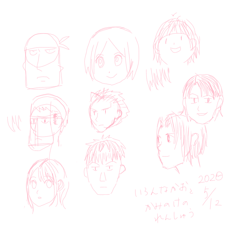 いろんな顔、髪の描き方の練習