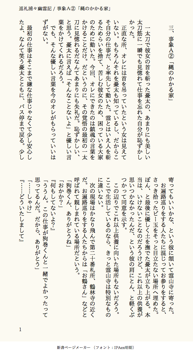 由 一☆quiet followPROGRESS3、事象A②「縄のかかる家」 #巡礼浦々幽霊記 show all(+7 images) Tap to full screen (size:618x1132).Repost is prohibited Let's send reactions! freqpopularsnackothersPayment processing Replies from the creator Follow creator you care about!☆quiet follow 由 一DONE「残念でした」「神様の恩返し」の世界線 2 由 一DONE「デッドマン・イズ・ワースレス」 4 由 一DONE「GHOST OF ROMANCE」🥞HB!!!全然関係ない話だけど祝いの気持ちは込めましたRWを越えて四人で歌い続けている話 5 由 一DONE「ミッドナイト・クリームシュガー・ハニー」大学同棲☕🥞のはなし美南見さんハピバでした🎉 3 由 一DONE「花の弔い」彰人の夢の話と知っている寧々とお手伝いの類 13 由 一DONE「Marry Me?」なにかに求婚される彰人の話冬弥は割とガチで怒ってる 4 related works 由 一PROGRESS9、事象C③「聖母マリア」 8 由 一PROGRESS7、事象C①「定食屋」 8 由 一PROGRESS6、事象B②「徘徊する」 12 由 一PROGRESS8、事象C②「後ろの正面だぁれ」 11 由 一PROGRESS5、間話① 落ちてくる部屋 9 由 一PROGRESS4、事象B①「人形不始末」 8 由 一PROGRESS1、五条相談事ム所 11 由 一PROGRESS3、事象A②「縄のかかる家」 8 由 一PROGRESS2、事象A① 「隣室の音」 8 recommended works duski542DOODLE※과거 날조, 외관 날조 有 貯水槽PROGRESS描き始めが🎈🌟になりました。何やってんだろうな。 kitakita_rockDOODLEまた描いてた shirasuDOODLE例の服 2 Rino*PROGRESS放置してた絵をまた描き始めた からすぱ/KARASPADOODLEケモケモの類くんかわいい みどきゅうDONEパンケーキが好きならパンケーキのトッピングになれば良いじゃない🥞 keromaru77DONE はとBOXDONE