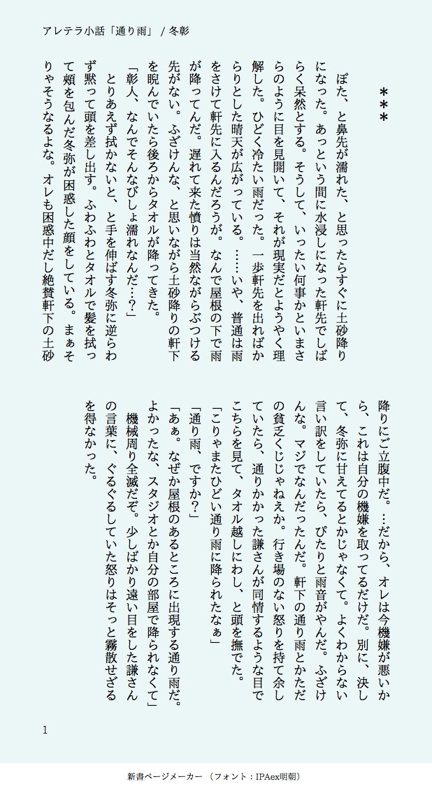 由 一☆quiet followDONEアレテラ小話「通り雨」 #冬彰 touaki Tap to full screen (size:618x1132).Repost is prohibited Let's send reactions! freqpopularsnackothersPayment processing Replies from the creator Follow creator you care about!☆quiet follow 由 一DONE「残念でした」「神様の恩返し」の世界線 2 由 一DONE「デッドマン・イズ・ワースレス」 4 由 一DONE「GHOST OF ROMANCE」🥞HB!!!全然関係ない話だけど祝いの気持ちは込めましたRWを越えて四人で歌い続けている話 5 由 一DONE「ミッドナイト・クリームシュガー・ハニー」大学同棲☕🥞のはなし美南見さんハピバでした🎉 3 由 一DONE「花の弔い」彰人の夢の話と知っている寧々とお手伝いの類 13 由 一DONE「Marry Me?」なにかに求婚される彰人の話冬弥は割とガチで怒ってる 4 related works まる。DONE冬彰です…💦 2 mogu_mogu1315DOODLE発情にゃんこが我慢できずご主人のフェしちゃうらくががきとっても汚い 練習パスワード 18歳??Yes or No hiyori_fabulistDOODLE彰人を甘えさせたい冬弥(結局一緒に寝た) 2 猫饅頭DONE👓️×🐶webオンリー【想い綴る藍の夜明け】での展示でした。1枚目のふんわり設定だけ置いておきます、見てくださってありがとうございました🙏また増えたら改めて上げたいと思います❤2024/08/19設定更新しました!あいあけ2開催決定おめでとうございます~! 柠不了洛DOODLE520的末班车 2 由 一DONE「GHOST OF ROMANCE」🥞HB!!!全然関係ない話だけど祝いの気持ちは込めましたRWを越えて四人で歌い続けている話 5 コウ🎈DOODLE冬彰18↑? (yes/no) ymuyami1031DONE冬彰 ⚠︎体液誕生日のお話のその後…(?)18↑? 2 コウ🎈DOODLE冬彰韓国のイベントで配布しておりました無配です 2 recommended works リリホワイトDOODLEまぁ otosakaDONE類くん tottomaaatoDOODLEキッッッッッスしてくれかなまふ kitakita_rockPROGRESS明日あげ DaybreakFireflyDONE 名無しDOODLEえななん髪の毛サラサラにしたかった ayuuu_orzDOODLE東雲彰人 🖌🖼🤎DONE泣き顔も美しいえななん! numaochiDOODLE寧々とえむの、類と司に対する甘え方の違い。サイスト読んでると司の素直さと器の大きさを感じる…ちゃんと怒るけど、全部許すんだねぇって言う、安心感…すごい 2