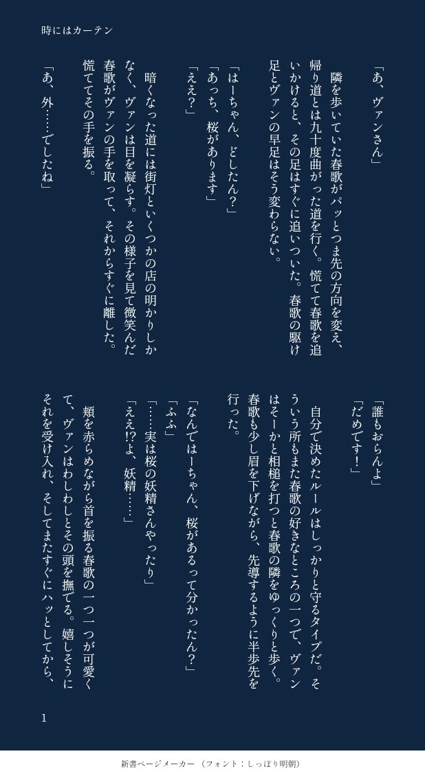 ちひろ(筑前煮)☆quiet followDONE時にはカーテン ##ヴァン春 show all(+2 images) Tap to full screen (size:618x1132).Repost is prohibited Let's send reactions! freqpopularsnackothersPayment processing Replies from the creator Follow creator you care about!☆quiet follow ちひろ(筑前煮)DOODLE金のメッキが剥がれ落ちても 6 ちひろ(筑前煮)DONE高嶺に置きたい花 4 ちひろ(筑前煮)DONE送り狼 4 ちひろ(筑前煮)DONEサンドイッチ 3 ちひろ(筑前煮)DONETele 4 ちひろ(筑前煮)DONE時にはカーテン 3 recommended works ちひろ(筑前煮)DONEそれはまだ埋まらないピースのひとつ 10 ちひろ(筑前煮)MOURNING誕生日にネタだけ出したやつ 2 ちひろ(筑前煮)DONEもらったワードで書くやつ頬、隙間、落ちる。 3 ちひろ(筑前煮)DOODLE管を巻く##ヴァン春 ちひろ(筑前煮)DONEドントストップ##大和春 4 ちひろ(筑前煮)DONEまたあした##ヴァン春 5 ちひろ(筑前煮)REHABILIお姫様抱っこ 2 ちひろ(筑前煮)DONETGTM 4 ちひろ(筑前煮)DONEラストデイ 2