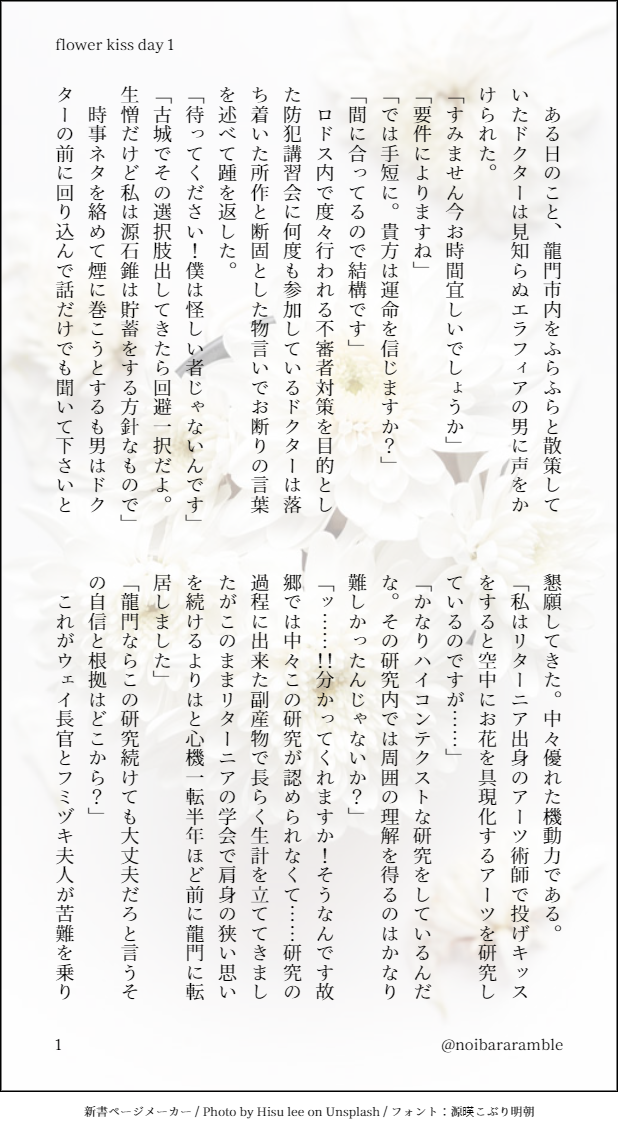 noibararamble☆quiet followTRAINING『flower kiss day 1』バレンタインの名残で、博がはぐれアーツ研究者の手によって投げキッスするとお花とお菓子を生み出す力を得てしまった博♂受コメディです。導入部分です。ファントムとグラベルちゃんが一緒です。 show all(+10 images) Tap to full screen (size:618x1132).Repost is prohibited Let's send reactions! freqpopularsnackothersPayment processing Replies from the creator Follow creator you care about!☆quiet follow noibararambleDOODLEマテリアルアドバンテージ銀博♂ 某都市のホテルで追いかけっこをしていた博が銀灰と偶然再会した話。銀灰の加入から1年程経過しています。この銀博は付き合っていません。駆け引きしたり間近で話したりする銀灰と博が見たくて書きました 19 noibararambleDOODLEドクうさたちが迎えたバレンタインのあれそれな小話です。個別短話は葬、鯉、銀灰です。その内加筆するかもしれませんドクうさとチョコレートキッチン ドクうさはドクターによく似たうさぎの呼称である。その生態や生活様式、立ち位置は各社各サーバーによって様々だが、これは特定のオペレーターの元で暮らしているとあるドクうさたちの話である。 このドクうさたちは普段それぞれのロドス、またはオペレーターの自国で暮らしているが時々情報共有会またの名をドクうさ集会で顔を合わせて近況を話し合ったりしている。うさぎのパブリックイメージに合わせて森の中で行うこともあればどこかのうさぎのいるロドスで行うこともある集会は本日いずこかのテストキッチンを貸し切りにして行われていた。 広々としたキッチンでは三角巾やコック帽を被りエプロンやコックコートを着たドクうさたちがチョコレートを刻んだり湯煎にかけたりしている。2月14日はロドスでも定着しつつあるバレンタインデーだ。そして新規統合戦略『サルカズの炉辺奇談』の開催日でもある。 3600 noibararambleDONEロトは夜巡る葬博♂R-18 葬に色々してあげたいけど自分では言い出せない博がくじ引きの箱を差し出すえちな葬博です。ぬるいですが騎乗位です。 7 noibararambleDONE鉱物展博♂受。基地内で鉱物展が開催されることになってドクターが奔走するお話です。時々コメディーです。全24枚。主な博受要素は銀、炎、葬、傀などです。 24 noibararambleDONE火色のパ・ド・ドゥ炎博♂バスルームでの短いやりとり。キス以上のことはしてないですが単語が飛び交ってるので念のため。全3枚 #秋のどすけべ炎博祭2022 3 noibararambleTRAINING『flower kiss day 1』バレンタインの名残で、博がはぐれアーツ研究者の手によって投げキッスするとお花とお菓子を生み出す力を得てしまった博♂受コメディです。導入部分です。ファントムとグラベルちゃんが一緒です。 11 recommended works しじょーDONE銀博(♂)でも戦闘はつよつよ少女と組まされる事が多い。 6 as_a_hirPROGRESS葬博。奇病を発症した博とそれを看護する葬さん。ついったーの診断で出てきた「ひなどり症」が可愛いなと思ったので。あと1話か2話続きます(最終的にはR18になります、たぶん) 8 ozaki_67984689DOODLE女装弊社博と葬。目の下のクマは化粧で隠してる。この絵ではしてないけど肩幅や体つきを隠すのに基本はストールを巻いたりしてるはず。葬はパートナーではなくSP仕様。 nbsk_pkDOODLEしっぽドライヤーしてもらえてご満悦な銀博もふもふの魅力は抗いがたし 時間つぶしにと読み始めた書類からふと顔を上げ、ドクターははデジタル時計の示した数字にやや困惑の表情を浮かべた。 彼がシャワールームに入ってからもうずいぶんと時間が経っている。いつもならばそろそろ端末を取り上げられ寝室へと連れ込まれていてもおかしくないというのに、水音の消えたシャワールームの扉はかたく閉ざされたまま。まさか倒れてなどいやしないよなと振り返った耳にはかすかにドライヤーの音が聞こえてきたため、生命にかかわるトラブルが発生したわけではなさそうだった。だがそれにしても長すぎる。少なくとも何かしら不測の事態が起こってはいるのだろう。冷え始めた足先を室内履きに乱雑に突っ込んで、ドクターはソファから身を起こした。コートもフェイスガードも纏わぬ身はひどく軽く、よく見知った自室であるというのにどこか無防備ささえ感じてしまう。ましてや今この身に纏っているのはシャツ一枚――自身よりも二回りは大きいサイズのそれが一体誰のものかなんて野暮なことは聞かないで欲しい――だけであるからして当然ではあるのだが。ぱたりと室内履きの音を響かせればほんの数歩の距離にあるシャワールームへと続く扉の前で、ドクターはゆっくりと口を開いた。 3491 しじょーDONE銀博(♂)ア◯レのアレ。 7 ginzi_O5DONE産卵体質の🥼とそれを見てしまった🔥の話ごめんなさいただの性癖です、誰にも配慮がないあらゆる事を受け入れる慈母神の気持ちになってください 11 mituguuPROGRESS【銀博♂】銀灰が好き過ぎて思考がぐちゃぐちゃな博の話|銀灰氏が妻子持ち(しかもふたご)というガセネタを聞いて気持ちをシ