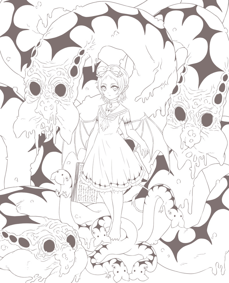 アリスは書庫の悪魔ダンタリオンの娘で、父親の眷属である影おじさんは彼女のお友達兼頼もしい従者。幼女×話通じなさそうなクリーチャーの組み合わせ良いよね…って事で生まれたキャラ。