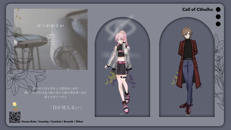 kinako0708TRPG☆quiet followDONECoC:はつかかすかKP:きなコ/彩衣 羊PL:くちびる/銀 來ヰ🐑両生還🗝死にっシャーHO1HO2で行ってきました✨️沢山頼らせてくれたしエスコートして貰っちゃいました🥰きぃちゃんはやっぱり素敵なお姉さんで頼りになる🫂✨大好きだ…助けてくれてありがとう✨️ #きなコの卓報告 Tap to full screen (size:2033x1148).Repost is prohibited Let's send reactions! freqpopularsnackothersPayment processing Replies from the creator Follow creator you care about!☆quiet follow kinako0708TRPGDONECoC:肺になるのを待っているKP:きなコ/葛西 知朱PL:肥料/夜凪 来幸└わら鬼HO1HO4継続✧エンドB-2✧昨日行ってきました〜!来幸くんの感じていた悩み(?)にシナリオが合ってたみたいで驚いたし知朱なりの意見を言わせてもらえて良かったな🥲これからも良き友人のひとりとしてサポートさせて欲しいし頼ってくれ🙏✨ご飯作ってもらえたのでQOLが上がりました🫰ありがとう! kinako0708TRPGDONECoC:可惜夜に願いを込めてKP:肥料/夜鶴 逢月PL:きなコ/東雲 陽彩└同空継続☀️🌙⟡両生還⟡陽彩の誕生日お祝いして貰いました🎂✨️😭さっくり回れるのに不安になる雰囲気で面白いシナリオだったし、逢月くんの優しさやもてなし?の心が暖かくて心がぽかぽかしました🌙相方のスマートな所や可愛らしい部分を浴びれて嬉しかったな〜!感謝🙏それにしても夜鶴逢月、INFPすぎる kinako0708TRPGDONECoC:うちゅう!KP:肥料/白縞 翔斗PL:きなコ/黒渕 希旺└ぬこ探偵組継続🩵💛⟡両生還⟡探偵組の雨無垢から4周年経った記念で回してもらいました☔️🪐短めのシナリオなのにしっかりうるっとくるシーンがあって普通に泣いたしやっぱ歴史の長い探偵組ならではの感慨深さがありました🥲✨これからも逞しくて強い最強の相棒で居続けて欲しい🐈⬛🐈回してくれてありがとう!! kinako0708TRPGDONECoC:うるう夜哭KP:きなコ/葛西 知朱PL:くちびる/朴 ロイ└わらう鬼HO3HO4継続⟡エンドA⟡PCの片腕が無くなる物騒なシナリオに連れてってました(?)2人とも無事に帰ってたし片腕も無事です!!!緊張感ある雰囲気でも緩いいつも通りのふたりで安定感があったなぁ😌ロイくんは苦しくて難儀な男だ……………… kinako0708TRPGDONECoC:心霊アパート大炎上KP:きなコ/御子柴 一PL:りあ/狐塚 鬼火└とくどくHO2HO4継続⟡エンドA⟡自探のアパート炎上させてきました🔥相変わらずカオスに適性がある二人で超楽しかった!!そして鬼火ちゃんは今回も最高の女でした🫰🫰🫰🐶🦊力技すぎる同棲が始まったのと、大半の所持品も馬券も消えたので今後はもう少し真っ当に生きる努力をすると誓った(御子柴が) kinako0708TRPGDONECoC:エッグタルトを夜に浮かべてKP:きなコ/東雲 陽彩PL:肥料/夜鶴 逢月└おなそら継続☀️🌙⟡両生還⟡おなそら自陣でエッグタルト作ってきました✨️🥚自陣らしい面白可愛いやり取りが沢山できて楽しかったな!逢月くん相変わらず怪しいお兄さんで好きです🫰美味しいもの食べたりいっぱい話したり制作中の曲聴いてもらったり陽彩にとって嬉しいことばかりでした!来てくれてありがとう! related works kinako0708TRPGDONECoC:溺遭KP:肥料:雨刃 漆PL:きなコ:彩衣 羊🐑エンド1☔️死にッシャーほいちほさんで行ってきました!ゆめたろうさんのシナリオだなぁ〜〜〜…ってなりながら通過してました😌怖面白かった…好きだな…ちょいしんみりしちゃったけど、漆くん怒らせるの楽しいし弄り弄られって感じで可愛かった!!✨️ kinako0708TRPGDONECoC:KPCが知らないおばさんと健康飲料売りにきたKP:きなコ/彩衣 羊PL:肥料/雨刃 漆🐑両生還☔️死にッシャーHO1HO3で大好きなギャグシ回してきました🥳漆くんすげぇボケかましてくれててめっちゃおもろかったwwwなぜか振り回されてたけど無事何とかなったのでオールオッケーです💪回させてくれてありがとう! kinako0708TRPGDONECoC:この夜はきみの手のひらの中KP:きなコ/Nill・AlbumPL:肥料/Cathy・Nigrum└Title Lost継続昨日!回してきました✨️キャシーが前よりどんどんいろんな表情するようになってなんか感慨深い🫂✨可愛い可愛い相方とのんびりお話出来て幸せな時間でした🫶回させてくれてありがとう!!! kinako0708TRPGDONECoC:獣の沙汰も君次第KP:りあ/硫黄 風蘭PL:きなコ/彩衣 羊🐑両生還🐾死にッシャーほいちほよんで遊んできました!✨️風蘭わんちゃんたくさん可愛がれてサイコーでした!!!可愛くて強い男の子だった!!!!シナリオもめっちゃしっかりしてて凄い楽しかった!!ありがとう🥰2枚目は激かっこかわいいイヌ🫶「ふーらくんお利口さんだったね✨️」 2 kinako0708TRPGSPOILERCoC:青い鳥がないたKP:肥料/七海 夢叶PL:きなコ/七海 雫⋆┈┈┈END-B┈┈┈⋆愚愚愚自陣で行ってきました過去一ボロボロになったけど物凄く刺さったし、BGMや追加描写も素晴らしかった🙏✨サシキシらしいしんどさはあったけどこの子達に本当に似合ってたなぁありがとう最高でした🫂(⚠️2枚目はネタバレ注意⚠️) 2 kinako0708TRPGDONECoC:各駅停車ダイヤログKP:くちびるPL:きなコ/葛西 知朱└わらう鬼HO4継続昨日回してもらい