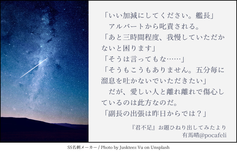 診断メーカーで出たお題を使用して書いた140字SSを、SS名刺メーカー様(https://sscard.monokakitools.net/index.html)で画像化したものを投稿します。