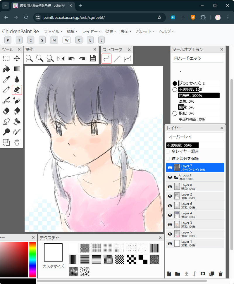 #ChickenPaint_be の新機能、ノイズテクスチャで鉛筆風主線とオイルパステル風水彩塗り。