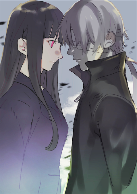 昔描いた日本刀少女と包帯銃少年の漫画のキャラ。
