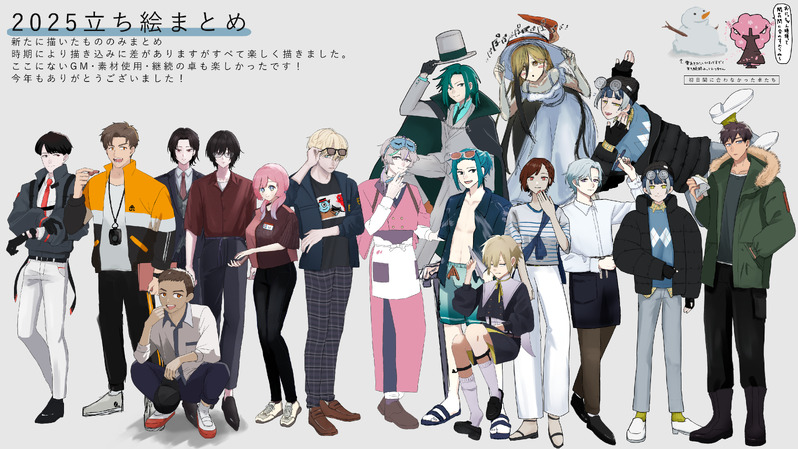 さこぉ☆quiet followDOODLE立ち絵まとめ の まとめ2020~年によってまとめ方は違いますが、どれも楽しい卓でした!ありがとうございます~! ##立ち絵 show all(+3 images) Tap to full screen (size:4134x2325).Repost is prohibited Let's send reactions! freqpopularsnackothersPayment processing Replies from the creator Follow creator you care about!☆quiet follow さこぉDOODLE立ち絵まとめ の まとめ2020~年によってまとめ方は違いますが、どれも楽しい卓でした!ありがとうございます~! 4 さこぉDOODLECoC「やさしいキミのこわしかた」配布素材に合わせてちょこっと用意していたもの駆け足だったのでラフ仕上がりなのと描写通りにできていないところは心残り……ですがPCちゃんの事が描けて満足です!部屋は完全配布素材の為タグはスチル扱い 5 さこぉDOODLECoC「清夏、朝へ返れ。」ネタバレなし 使用イラスト突発だったけれど夏に夏シが遊べる嬉しさから描きたかった、うだるような夏の二人!本編では青単色で使ったけど、凛空くんのカラーリングが好きなので色もつけちゃいました 2023年のセッションのもの さこぉDOODLECoC「絵のない展覧会」遊んでる途中らくがき! さこぉDOODLECoC「Paranormal Crime」パラクラ感想イラスト(途中の為、描いたPC等偏り有)HO4で遊んでもらってます! 9 さこぉDOODLEDX3rd ネタバレのない感想・オーヴァード落書き。「The day monster was born」「use to force」「ディアボロス・ベティ」「Reversing Justice When to select」 6 recommended works あかねDONE鍵垢のバレンタインアイコン あかねDONE立ち絵表情が多いとこういうふうに整理していちいち見ながら変えたりしてる。文字は添えてるだけであんまり意味ない あかねPROGRESS2.5/17↑進捗 あかねDONEクリスタの血痕スタンプほんとボルボックス あかねDONE過去絵 あかねDONEミニず 4 あかねMOURNINGおかしなことを言いますが絵を描く前に絵を描くとうまくいくんですよ あかねDONE背景加工は力尽きた あかねCAN’T MAKE目の色に悩んでいる
