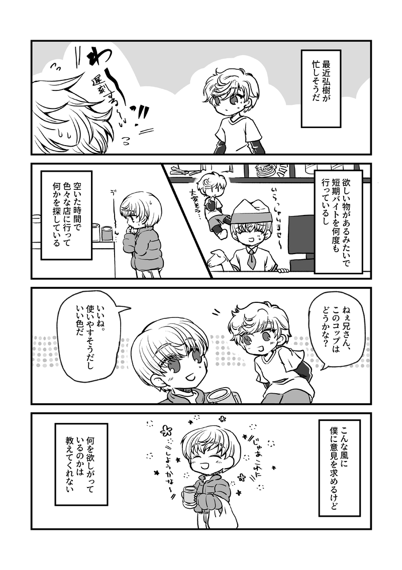 ずっと頑張っていた兄さんには幸せになってほしい&こういうやりとりがあったらいいなという妄想漫画です。片山兄弟は互いにブラコンっぽいと可愛いな。