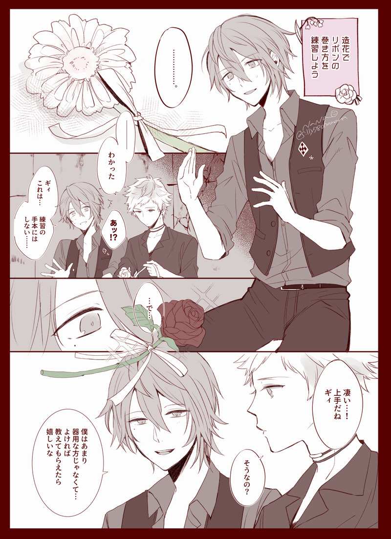 いまだにWDに生きてる人の、なんやかんやあってわけありの関係にあるギィリンとお花とリボンと不器用(※リンドウくん不器用ではあるそうですが🎀が結べないというような情報はありません)