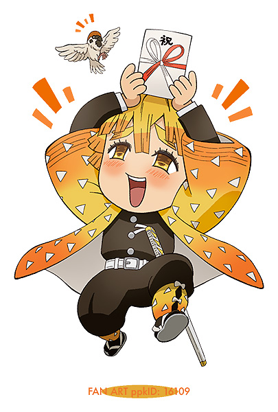 『鬼滅の刃』より我妻善逸くん。お店の子の誕生日にギフトカードをあげたのですが、それを入れるためのポチ袋用に制作しました(2枚目)。原作知らないキャラを描くのは不安だったけど(キャラぶれなど)、喜んでもらえて嬉しかったです。一応画像収集以外にアニメ公式サイトとかティザー動画見たり、アニメ情報系サイトのキャラ特集で性格調べたりはした。