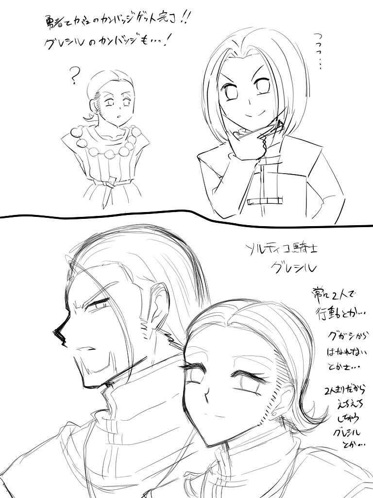 ワンドロのお題が騎士なのでソルティコ騎士な2人のグレシルが浮かんでます…良い!けどイメージがまだふわふわ…うーん…