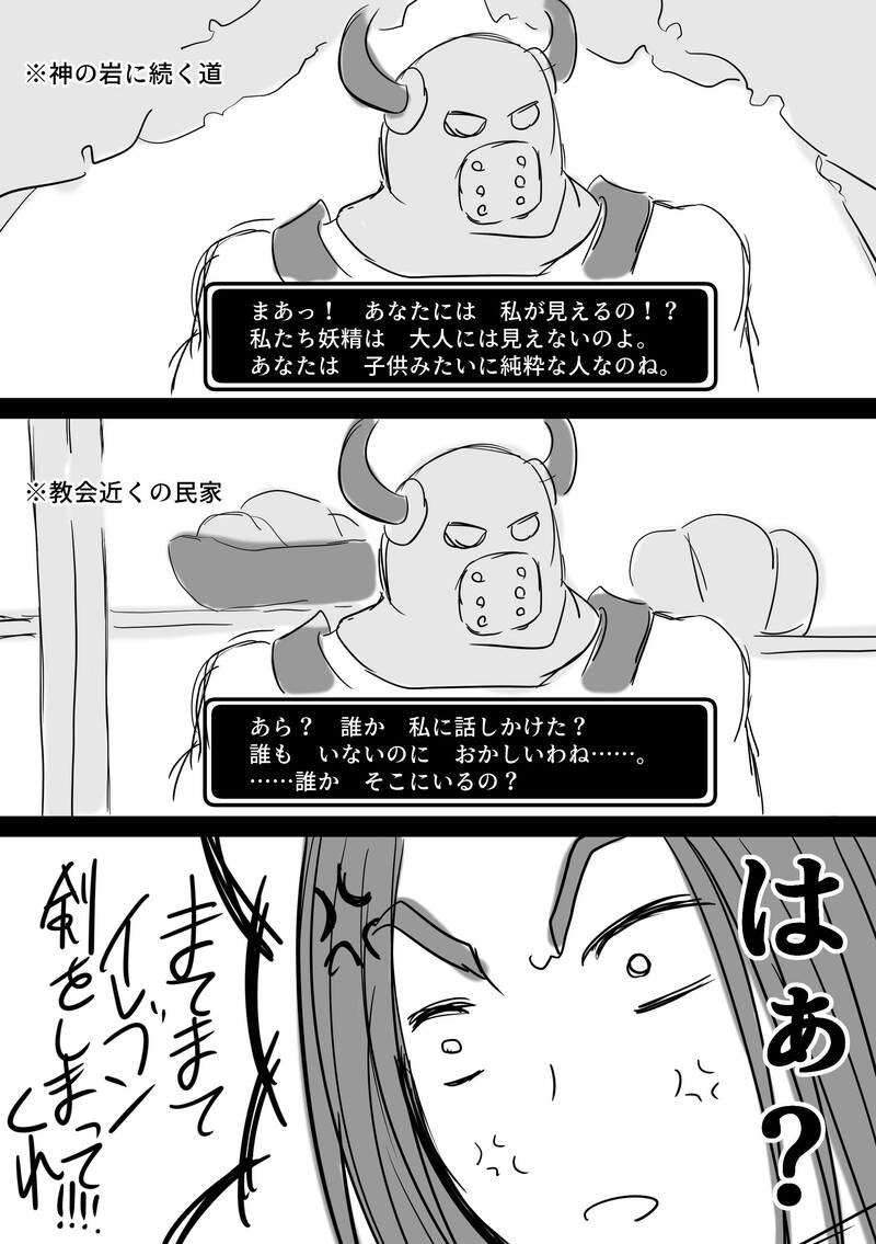 あらくれ×2にウソつかれてキレる勇者の図。1コマ目はDQ5のベラだけど2コマ目はどのナンバリングの誰が言ってるんだろう……