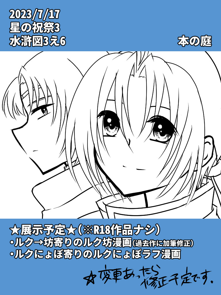 ルク坊漫画とルクにょぼラフ漫画を展示予定です