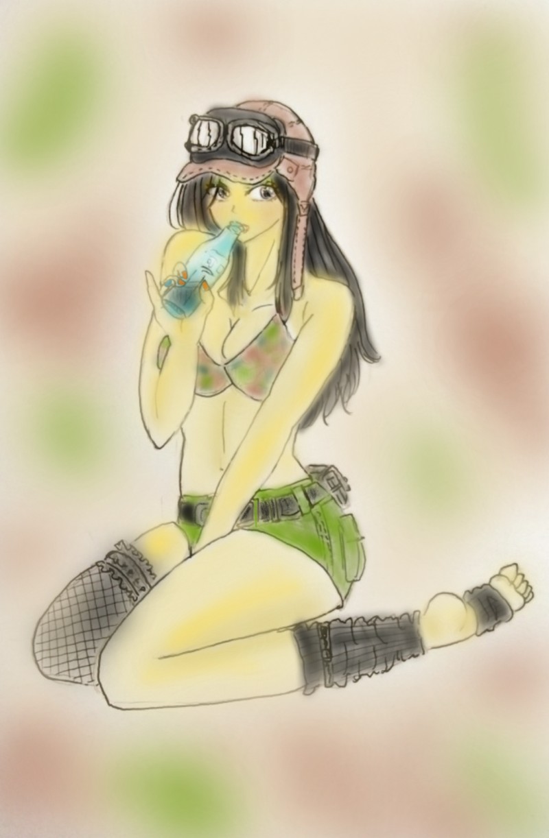 ポージングも衣装も小物もぜ~んぶ自分の脳内から引っ張り出した作品で、自作品の中じゃ唯一まともに描けたんじゃないかって思ってるやつなんだ~