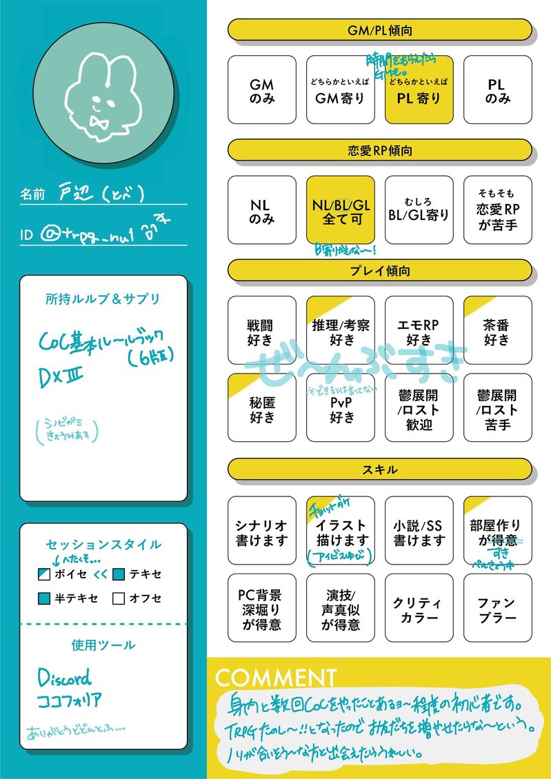 trpg_nu1☆quiet followDOODLE自己紹介テンプレお借りしてますカワイイよ〜っ Tap to full screen (size:1449x2048).Repost is prohibited Let's send reactions! freqpopularsnackothersPayment processing Replies from the creator Follow creator you care about!☆quiet follow trpg_nu1DOODLE20250621//只野仁哉 trpg_nu1DOODLEミノツキ 7 trpg_nu1DOODLEシズメいろいろ 6 trpg_nu1DOODLECoC trpg_nu1DOODLE愛罪 2 trpg_nu1DOODLE20240324/明日晴れ//夕占莞爾 2 recommended works nissei_mtwMOURNING今回の水那月かずさ~立ち絵!でした!悪ガキ感好きなんだけど描き慣れると今後顔面変わりそうな気もする 11 nissei_mtwMOURNING今回の閑藤三幸立ち絵~でした!陰気なおじ………青年だったけど思ったより感情を拗れさせる頭が無いかもと思いました 14 @chairoikeitodaPROGRESS進歩……レイヤー統合戻せなくなったのでクマの線が太いのはそういうものということで………… @chairoikeitodaPROGRESSこれは煮える……ボタン書き間違えてたのは直した trpg_nu1DOODLE20201219/クロリナ//守永丈晃 trpg_nu1DOODLE20201221/ある事件簿//新山晴志 trpg_nu1DOODLE20201227/永縁を君と//田宮睦 trpg_nu1DOODLEドロディス//ミチカ trpg_nu1DOODLE20210220/カタシロ//吉野谷貴澄