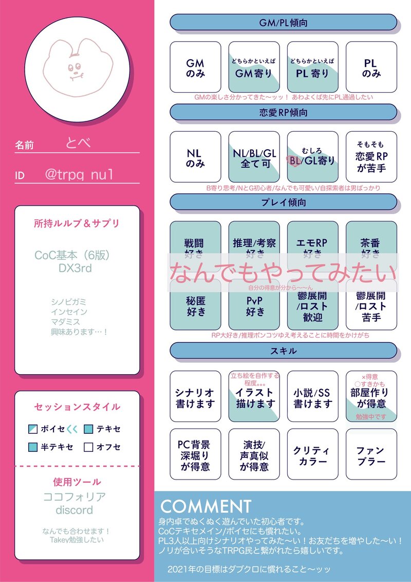 trpg_nu1☆quiet followDOODLE更新したので…🎉テンプレお借りしてます(保管用)くまちゃん可愛い Tap to full screen (size:1448x2048).Repost is prohibited Let's send reactions! freqpopularsnackothersPayment processing Replies from the creator Follow creator you care about!☆quiet follow trpg_nu1DOODLE20250621//只野仁哉 trpg_nu1DOODLEミノツキ 7 trpg_nu1DOODLEシズメいろいろ 6 trpg_nu1DOODLECoC trpg_nu1DOODLE愛罪 2 trpg_nu1DOODLE20240324/明日晴れ//夕占莞爾 2 recommended works nissei_mtwMOURNING今回の水那月かずさ~立ち絵!でした!悪ガキ感好きなんだけど描き慣れると今後顔面変わりそうな気もする 11 nissei_mtwMOURNING今回の閑藤三幸立ち絵~でした!陰気なおじ………青年だったけど思ったより感情を拗れさせる頭が無いかもと思いました 14 @chairoikeitodaPROGRESS進歩……レイヤー統合戻せなくなったのでクマの線が太いのはそういうものということで………… @chairoikeitodaPROGRESSこれは煮える……ボタン書き間違えてたのは直した trpg_nu1DOODLE20201219/クロリナ//守永丈晃 trpg_nu1DOODLE20201221/ある事件簿//新山晴志 trpg_nu1DOODLE20201227/永縁を君と//田宮睦 trpg_nu1DOODLEドロディス//ミチカ trpg_nu1DOODLE20210202/怪盗団//弓間理津