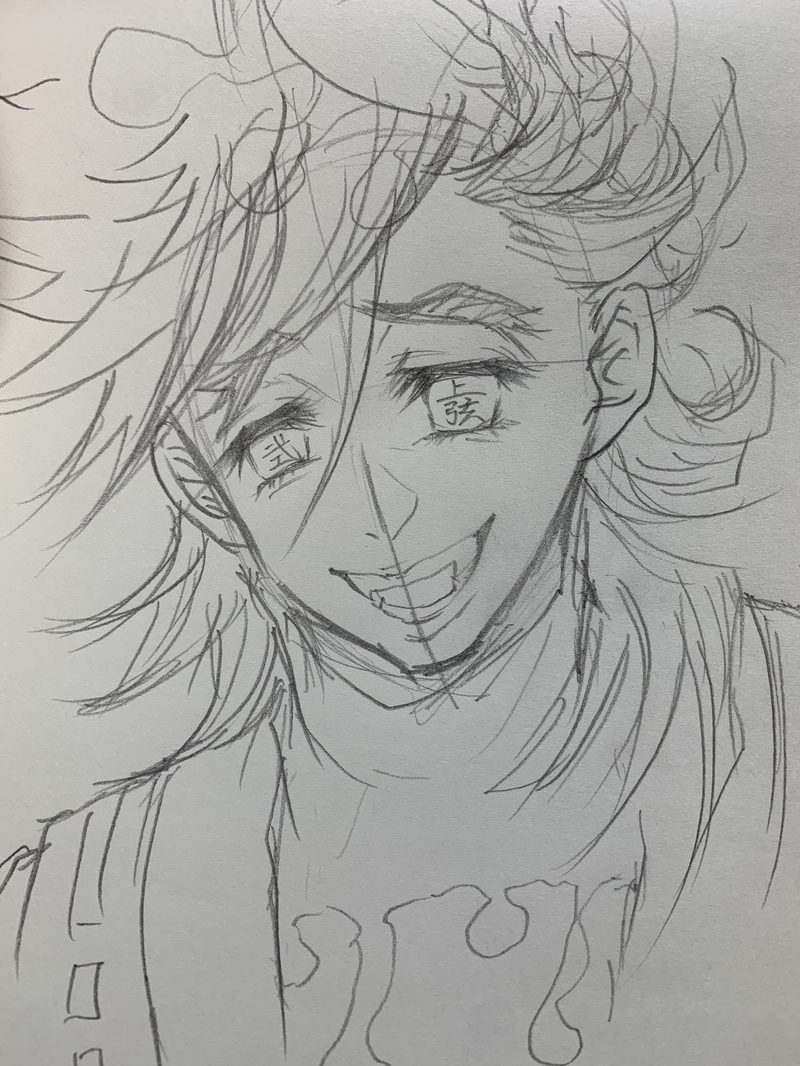 鬼滅で童磨描いてみました。初描きアナログですが😅💦💦