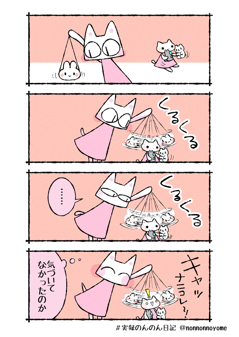 喜ぶかな~ と思ってポシェットを顔の周りで振り回してみた。