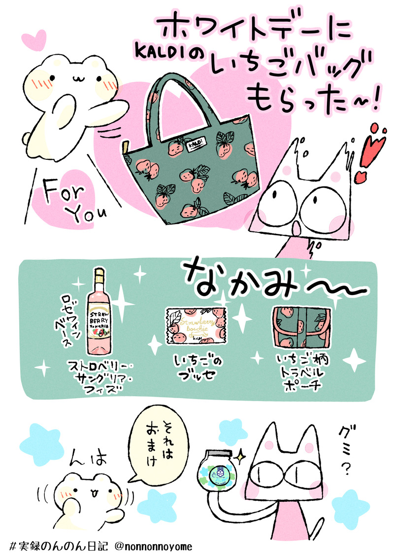 のんのんからホワイトデーのプレゼントもらったので嬉しくて描きました。大変かわいいです!全部好き!!