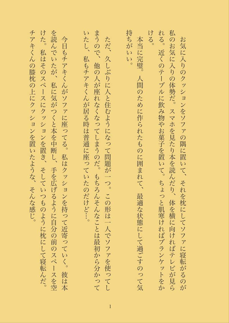 uti☆quiet followDONE冬のネットアンソロ、こたつ。秋のネットアンソロのチア相のアンサーっぽくしたんじゃ。https://twitter.com/utieet/status/1211552697628778497?s=20 ##チア相 ##SS ##企画 show all(+7 images) Tap to full screen (size:1449x2042).Repost is prohibited Let's send reactions! freqpopularsnackothersPayment processing Replies from the creator Follow creator you care about!☆quiet follow utiDONE2020.08.26 #真夏のパルマホラーネットアンソロFGO夏イベとかで実験記録みたいなのあったのでそれに触発されて書いてみた。まあホラー感はそんなに出ずだけど、本編の未説明部分の補完的なネタを入れたのでそういうの好き。 4 utiMEMO2020.08.23,27のスケブ 5 utiDONE #パルマネットアンソロ・2020夏朝、家庭菜園のミニトマトを見て嬉しそうなチアキくん😊最初にアップしたものから顎周りを直した。アニメ塗りっぽくしてみた。背景がやる気無し😅2020.08.08 utiDONE #パルマ版60分一本勝負サングラス!時短のために、線画なし2020.08.05 2 utiDOODLE2020.08の落書きポイポイ用 9 utiDONE2020.07.30第二回はイラストで参加させてもらいましたー。 recommended works ノヽシ关リDOODLE双士郎 ぱむこ/さわだPROGRESS用紙サイズ間違えてて色々修正したり使いたいトーンが見つからなくて延々とASSETS見て回ったりしてます・・・・・・ utiMOURNING友達期間のどこかの供養。なんか恥ずかしみが強くてあまり見返せていない。。https://privatter.net/u/utieet utiDONE #真夏のパルマホラーネットアンソロ夜間は外出禁止https://twitter.com/utieet/status/1278857715364724738?s=21思いつきベース。二段オチ?好き。夜間は外出禁止の理由が何かあるのでは的なね。特に何も考えてないので好きに想像しよう。マントが何か関係してますかね(テキトー) 3 いつでもごはんがたべたいDONE婚姻結ばせていただいた記念!ツンツン&おっとりなの可愛すぎますね…! いつでもごはんがたべたいDONE婚姻結ばせていただいた記念!街で流行ってるものとかを教えていたらKAWAIIね…※衣装等間違ってたらすみません🙇💦 いつでもごはんがたべたいDOODLE企画時系列から何年後かのトフィ前々からぼんやり将来はショートになるんだろうな〜って考えていたまだまだお菓子と魔法の修行中 emi@小蝦の姿TRAINING「浮舟イデオロギー!」アズVSイデ+監15minひたすら思いついたものを書くやつやっぱ口調で迷うと時間が減るorz迷った割にそこまでハマらなかったな。VS物が好きなんですよね。だから書いてみたかったんですけど、考えが取っ散らかっただけで終わっちゃいましたね。そんなに書くのは得意じゃないのが分かっただけでも良かったかも?(;'∀')みんなVS書いて―!需要はここに有ります!!! ClaPAST別所からのお引越しその4。Pixiv、Twitterで参加した創作企画ログ。書きかけ多めです。※他の方のお子さんをお借りしています。シノバノチョウさん【https://www.pixiv.net/artworks/54753426】アシュリンちゃん【https://www.pixiv.net/artworks/61216023】宇佐美らびさん 17