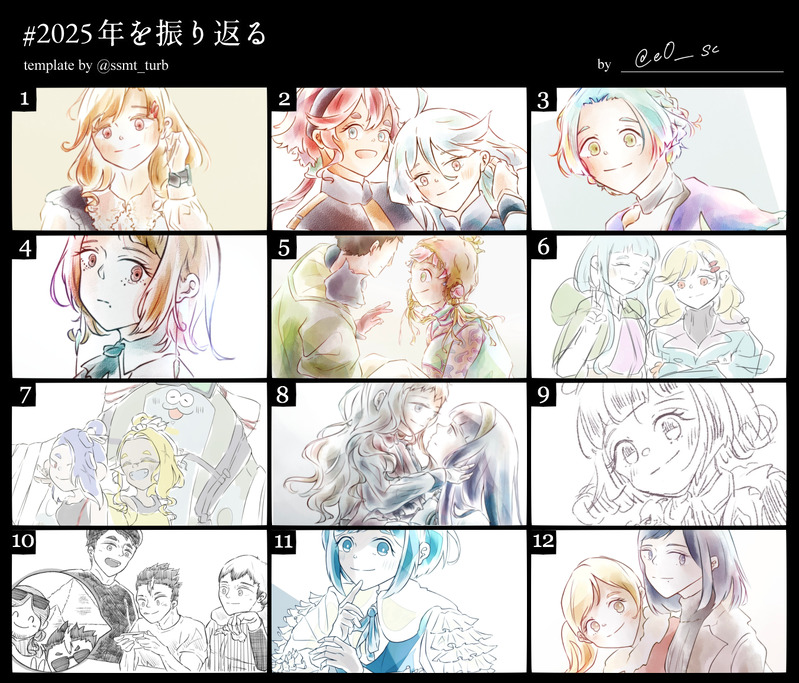 e0__sc☆こそフォロ過去のを晒す2025年版 今年の絵を作業BGMと共に振り返る すべて表示(+1枚) タップで全画面(原寸:1351x1155)無断転載禁止 e0__sc過去のを晒すここに載せてなかった絵とか落描きとか。ジャンル超雑多! 18 e0__sc過去のを晒す2025年版 今年の絵を作業BGMと共に振り返る 2 e0__scメモ備忘録。漫画で使用したブラシ・ペンのこと。(使用ソフト: clip studio paint EX) 4 e0__sc過去のを晒す2024年度版 今年の絵を作業BGMと共に振り返る 2 e0__sc供養ラフやら落書きやら色々。ジャンル雑多。 12 e0__sc過去のを晒す # 絵柄変遷年表2枚目はおまけです 2