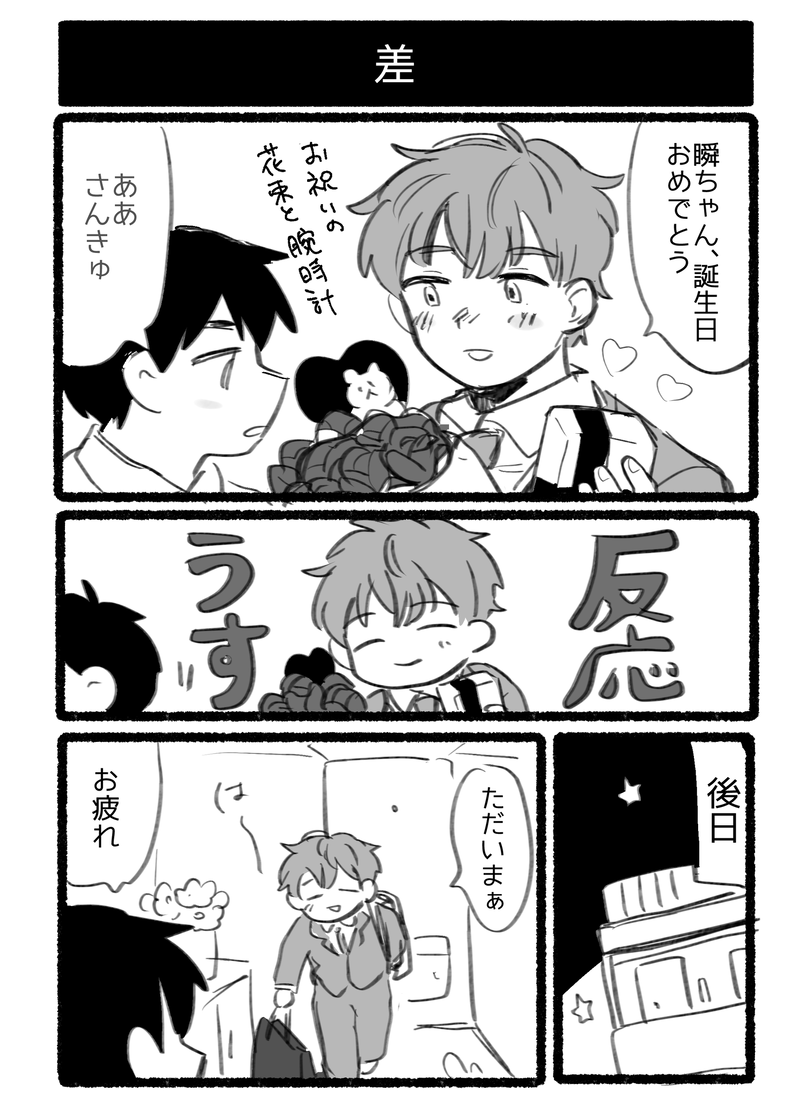 こぐまい☆quiet followDOODLE ##彗瞬 show all(+2 images) Tap to full screen (size:1477x2048).Repost is prohibited こぐまいDOODLE2025/08/31夏休みの宿題 こぐまいDOODLE2025/07/22ベタな夏ネタ2本 2 こぐまいDOODLE2025/06/30我々の業界ではご褒美です こぐまいDOODLE2025/06/29 2 こぐまいDOODLE2025/06/23ちゃんと下履いてる こぐまいDOODLE recommended works 魚ぜんまいPROGRESS難しい ぐんじMAIKING寝る前にちょっとだけ osame_120DONEバイクショップサメジマ 4 ムラサキゲジゲジMEMOなんか思いついたのでめも(平行次元開発してないで早く元次元のイメージ固めろや)#オリキャラ ##ムラサキゲジゲジのちびダーク #創作BL #お絵描き #創作 #oc #originalcharacter #yaoi #yaoioc ちび。DOODLEいつもいちゃいちゃしたい攻めと恥ずかしがり屋受けの攻防戦🥰(まさと×なつき) 2 EllieDOODLEBL(?)かも DV彼氏(?)と付き合ってる男の子が友人の男の子と話してるみたいな漫画 2 ネピアPAST実験ジンリサ 4時起きDOODLE創作BL既刊再版の書店委託追納できたみたいです。成人向けのページにリンク貼るのもなあというかんじで…よろしければpixivからご覧ください…すみません…。画像は投稿していなかったらくがき…。 2 愛舐屡 湊DONEお題ガチャからのネタですˊᵕˋ 4